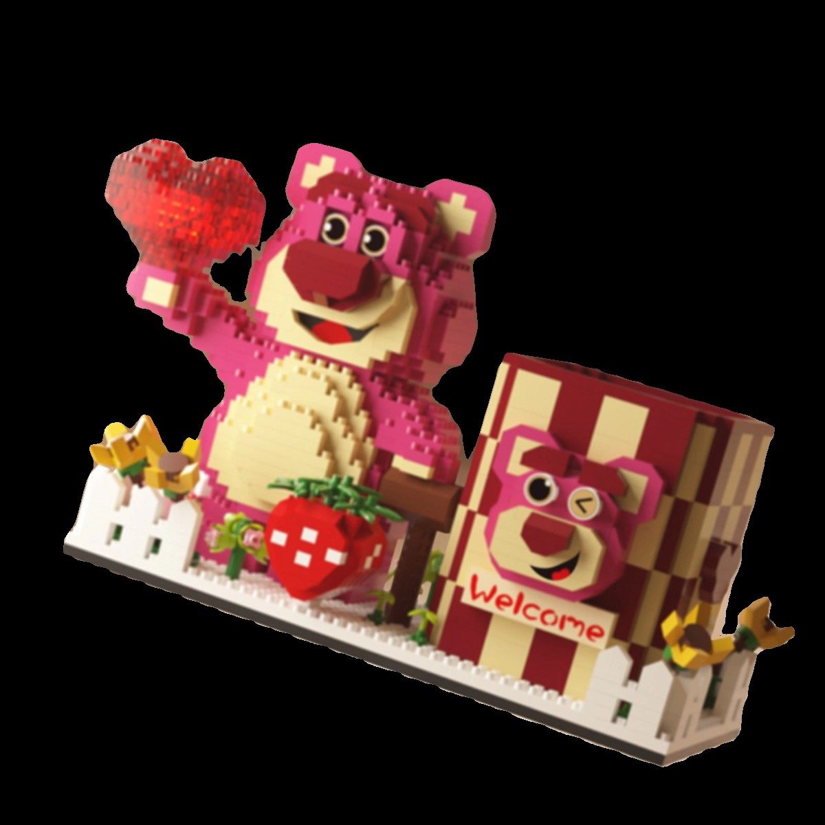 兼容乐高积木草莓熊笔筒拼图玲娜贝儿女孩子系列拼装玩具摆件礼物