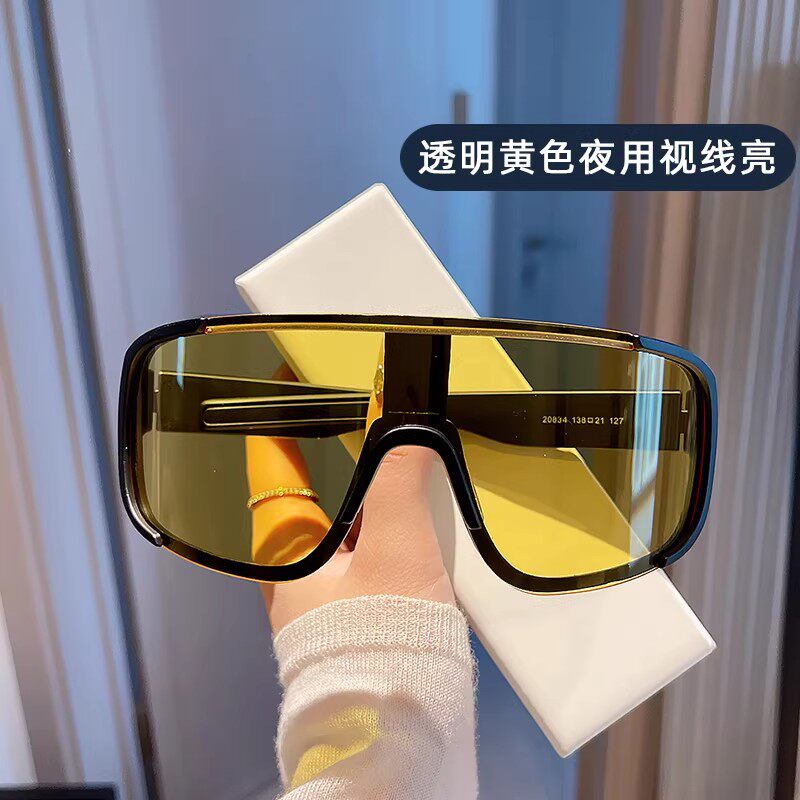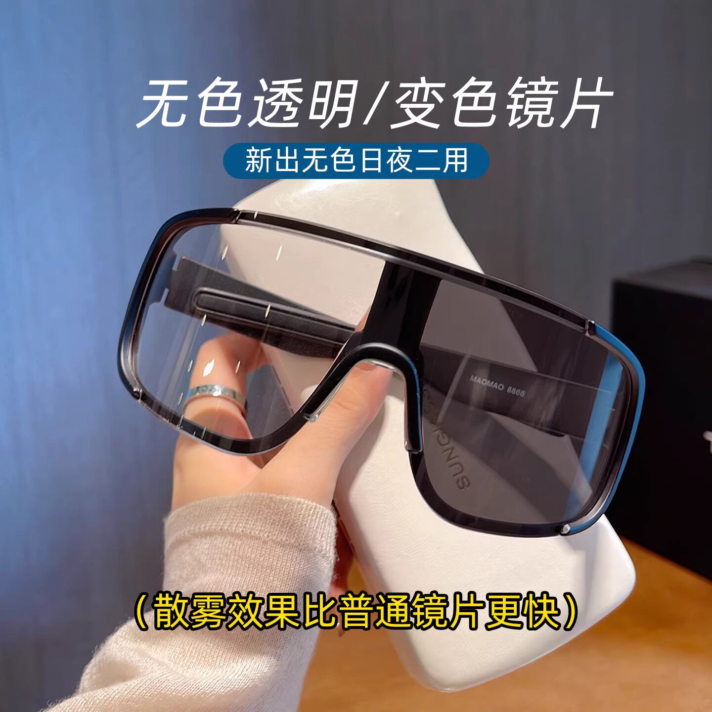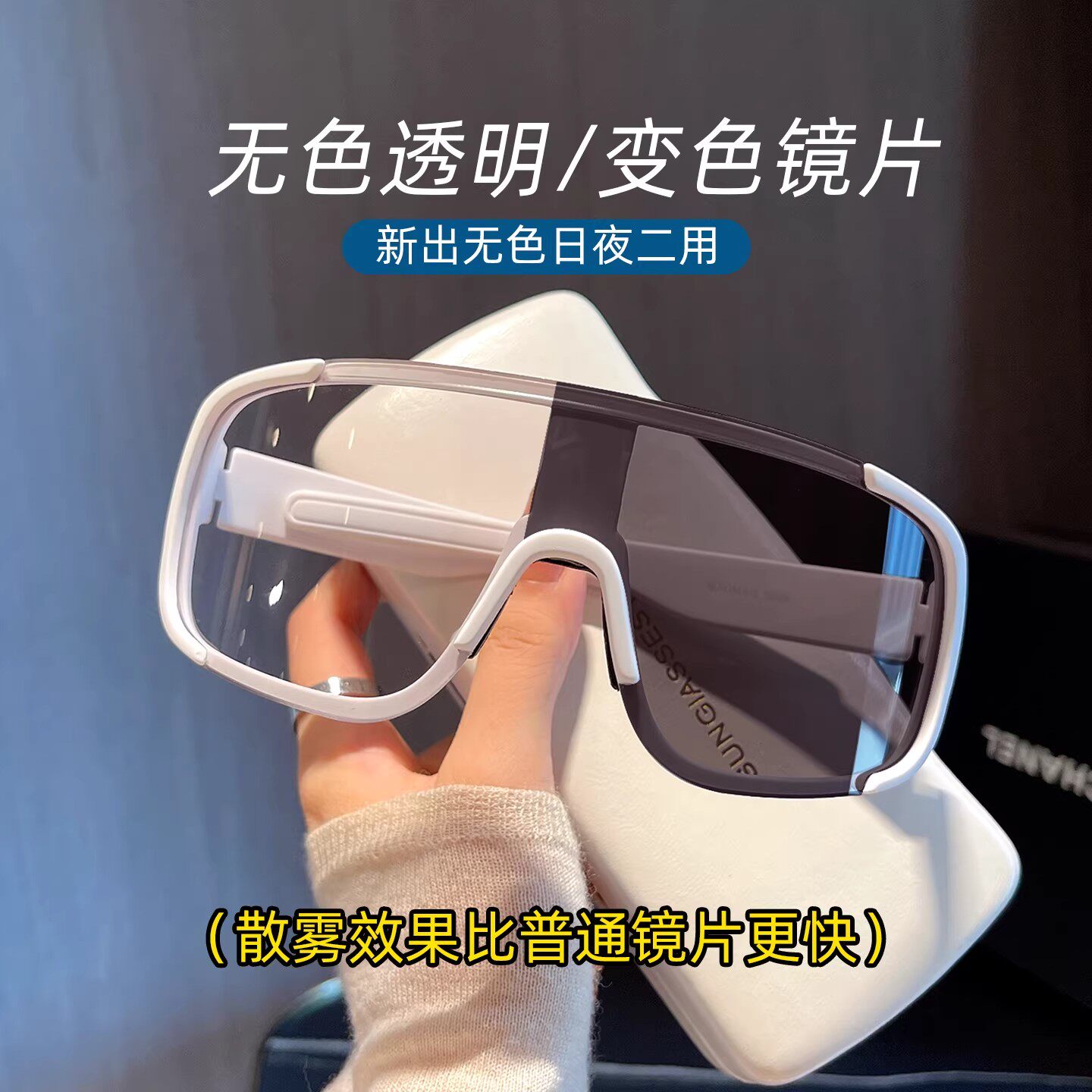 时尚变色镜片骑行眼镜日夜二用防风偏光太阳镜女大脸大框墨镜男士