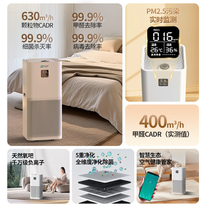 贝尔克D8L新房装修空气净化器家用除甲醛病毒负离子杀菌净化器