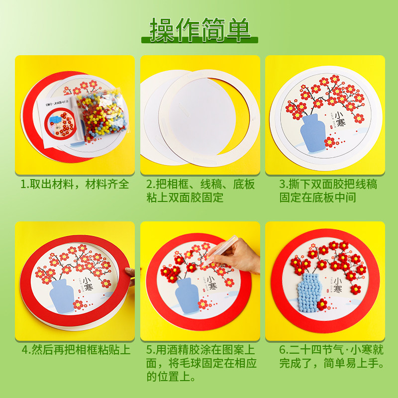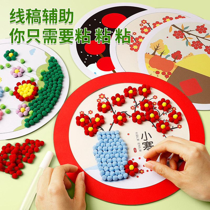 传统文化二十四节气24节气毛球粘贴画儿童手工幼儿园环创diy制作幼儿园早教亲子手工材料包相框带视频