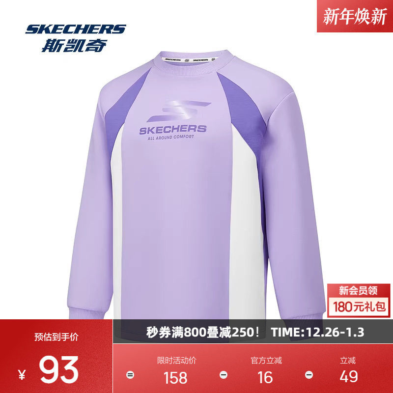 斯凯奇亲子卫衣男女同款舒适休闲时尚中大童运动柔感空气层蓬松