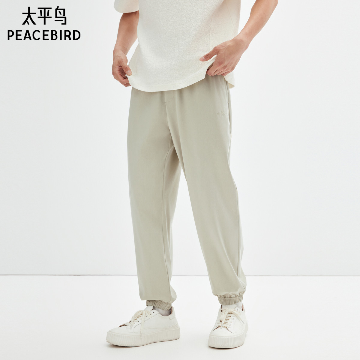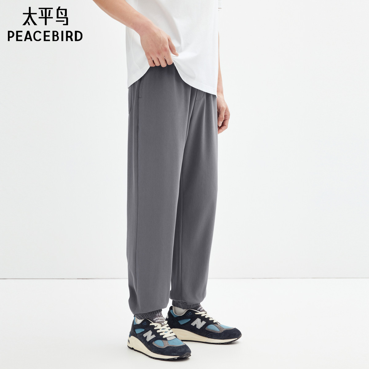 【重磅】太平鸟男装休闲裤针织夏季纯色男士锥形束脚运动裤薄款潮