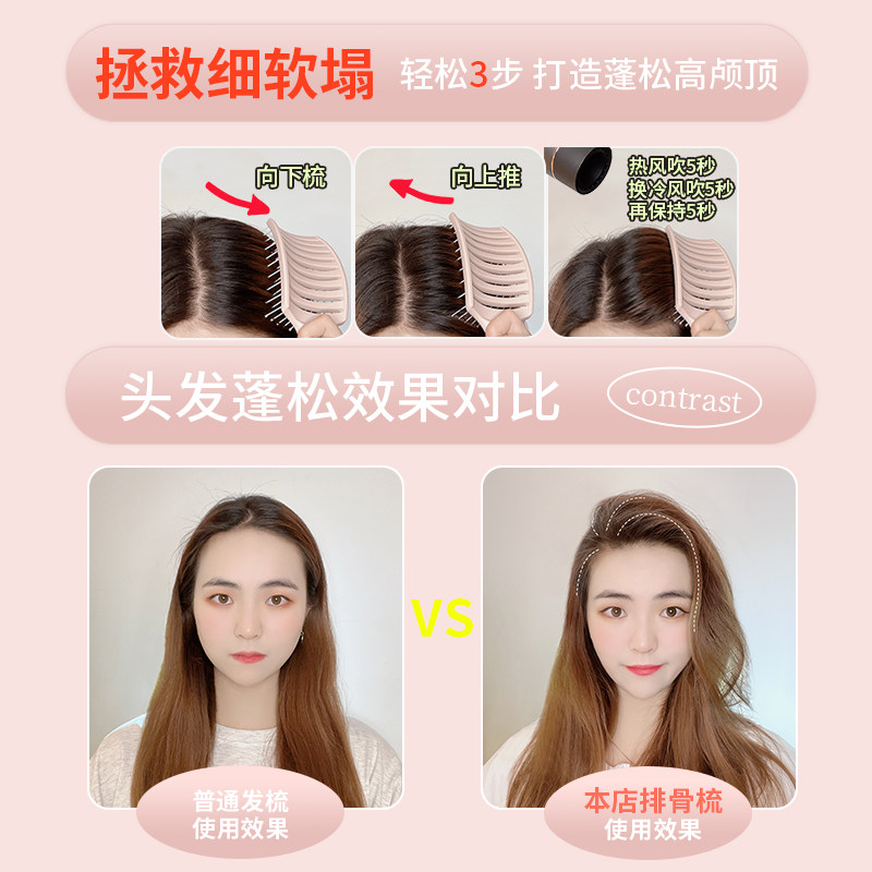 排骨梳女士专用高颅顶神器家用蓬松头发造型气囊按摩镂空大弯梳子