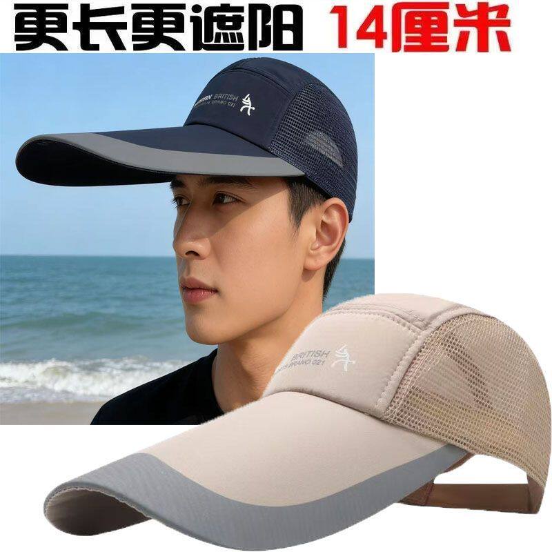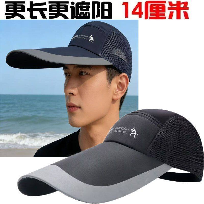 夏天薄透气遮阳鸭舌帽男网眼镂空帽子女韩版潮帽加长檐防晒棒球帽