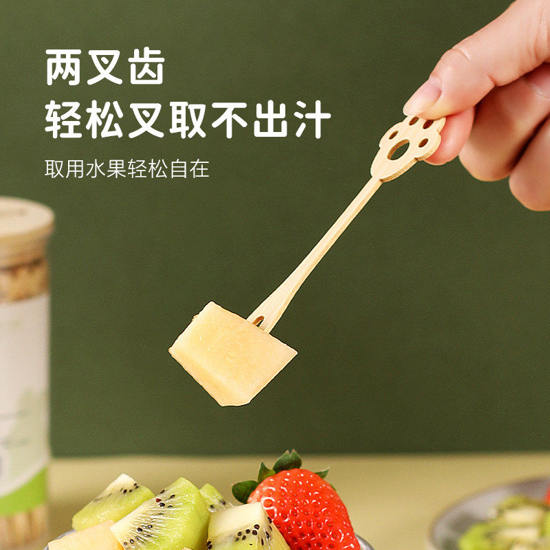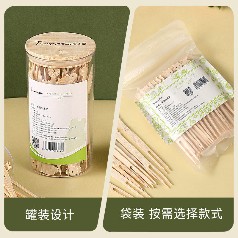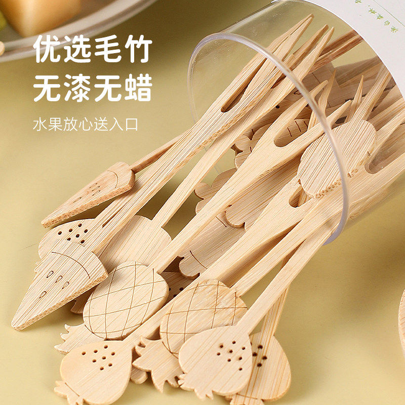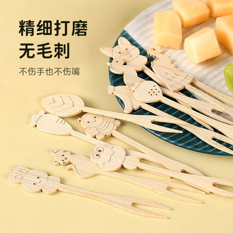一次性水果叉食品级家用竹制签子儿童安全蛋糕甜品卡通动物小叉子