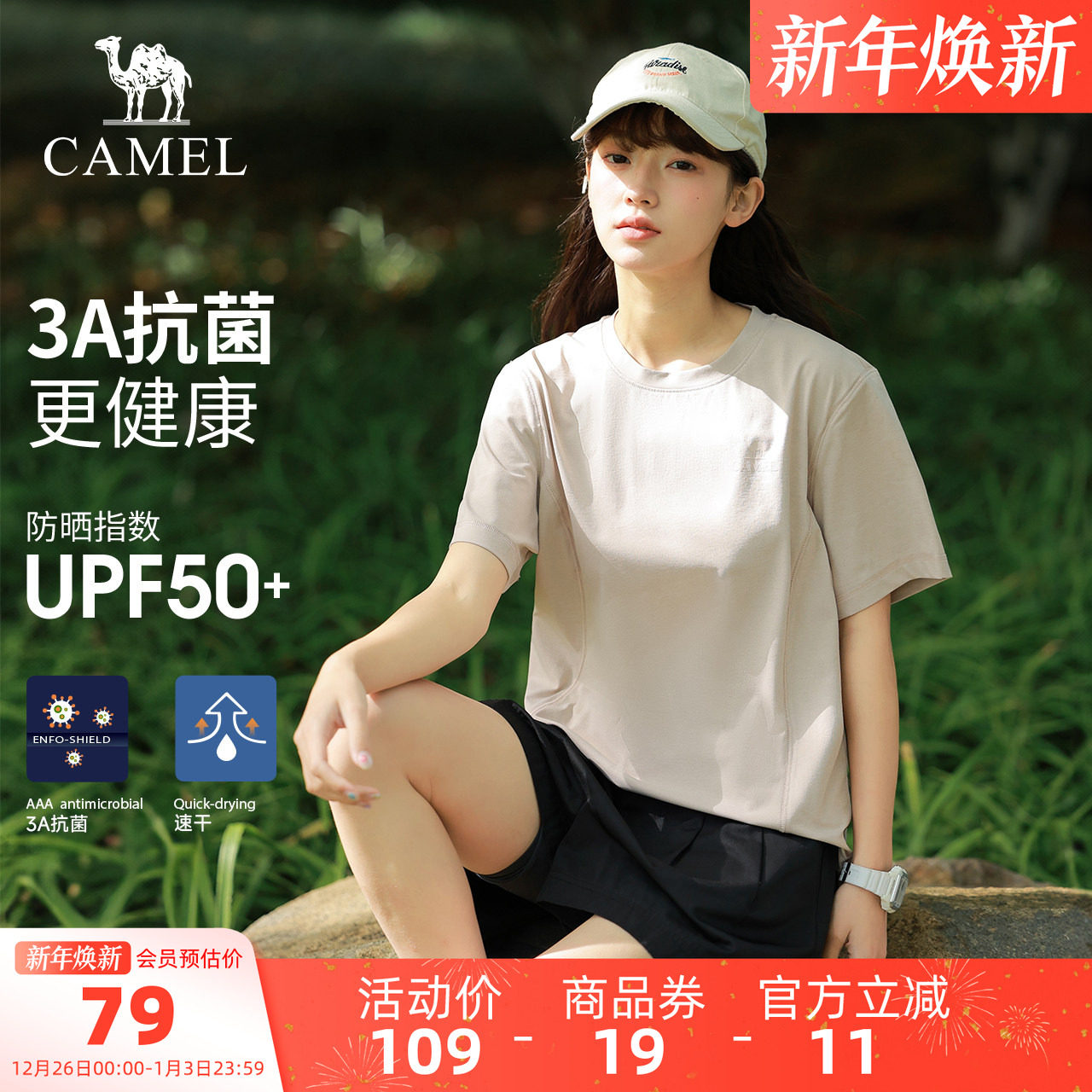 【3A抗菌】骆驼户外速干T恤女夏季短袖弹力抗皱透气运动防晒T恤男
