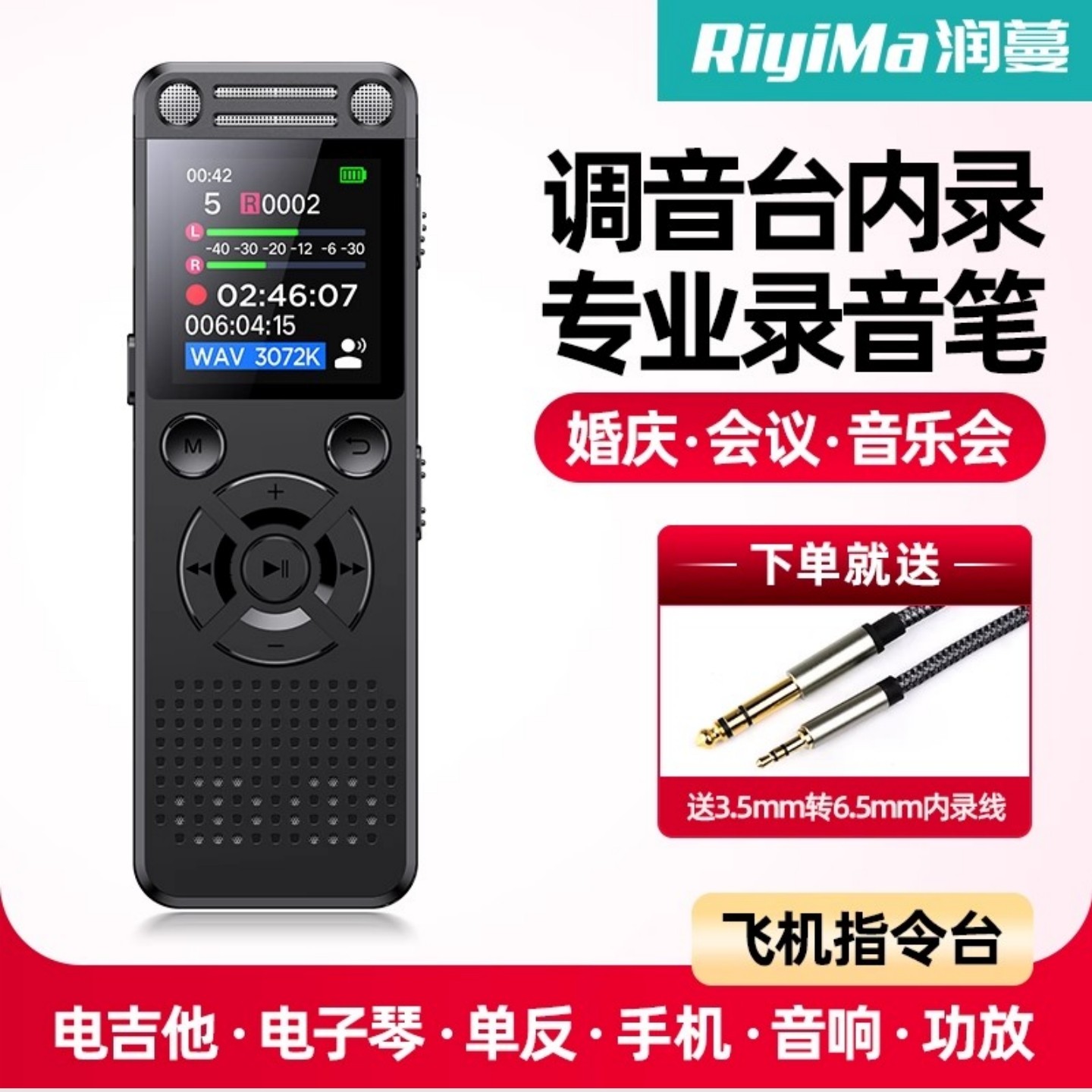 润蔓录音笔调音台录音器内录小型录音笔便携高清降噪专业录音设备