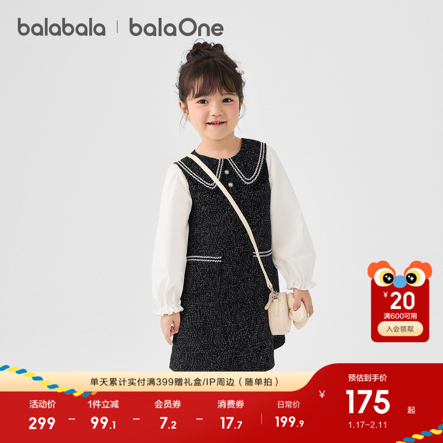巴拉巴拉童装女童背带连衣裙2025冬装新款儿童小香风红色拜年服潮