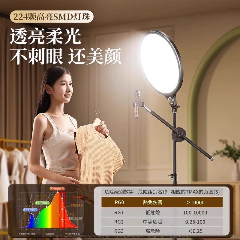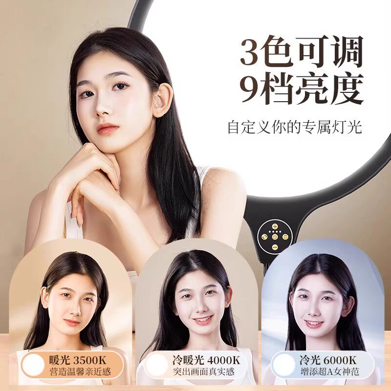 直播补光灯专用面部灯光专业直播间面光柔光灯主播手机桌面落地美颜灯室内打光灯拍照摄影拍摄全面屏环形支架