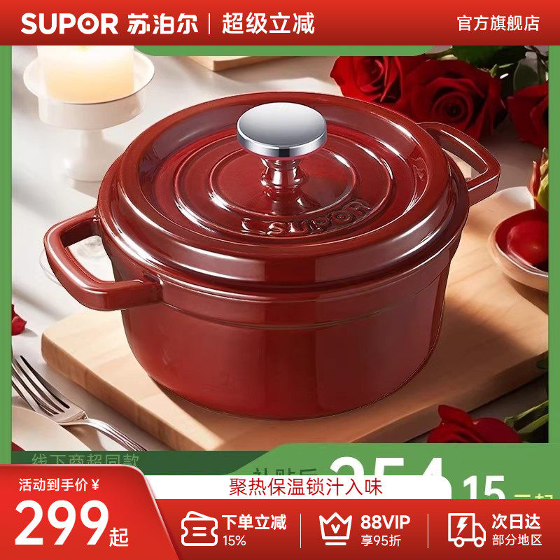 苏泊尔珐琅锅红色铸铁锅家用炖锅砂锅煲汤锅焖锅电磁炉燃气炖汤锅