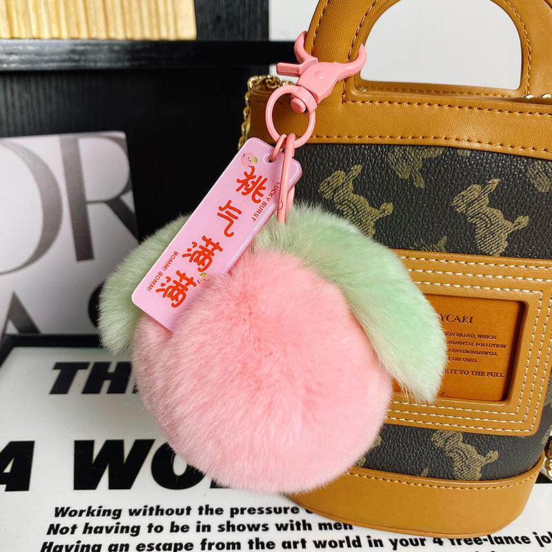 精品真毛獭兔毛绒水果钥匙扣挂饰柿子葡萄苹果桃子书包包挂件礼物