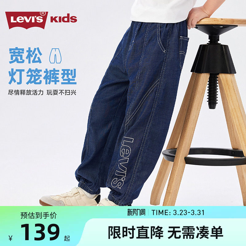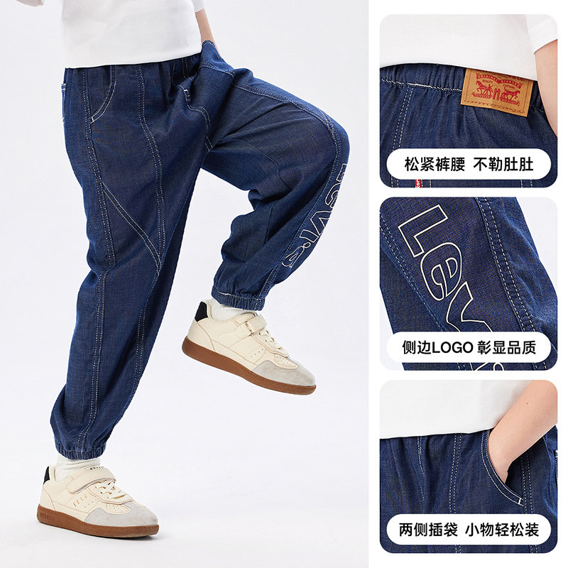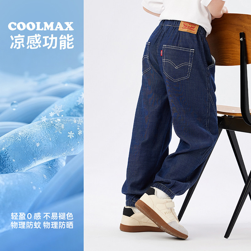 李维斯男童牛仔裤天丝凉感儿童裤子透气2026夏装女童防蚊裤运动裤