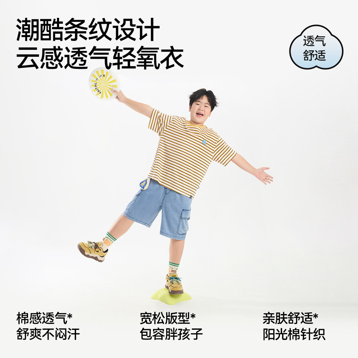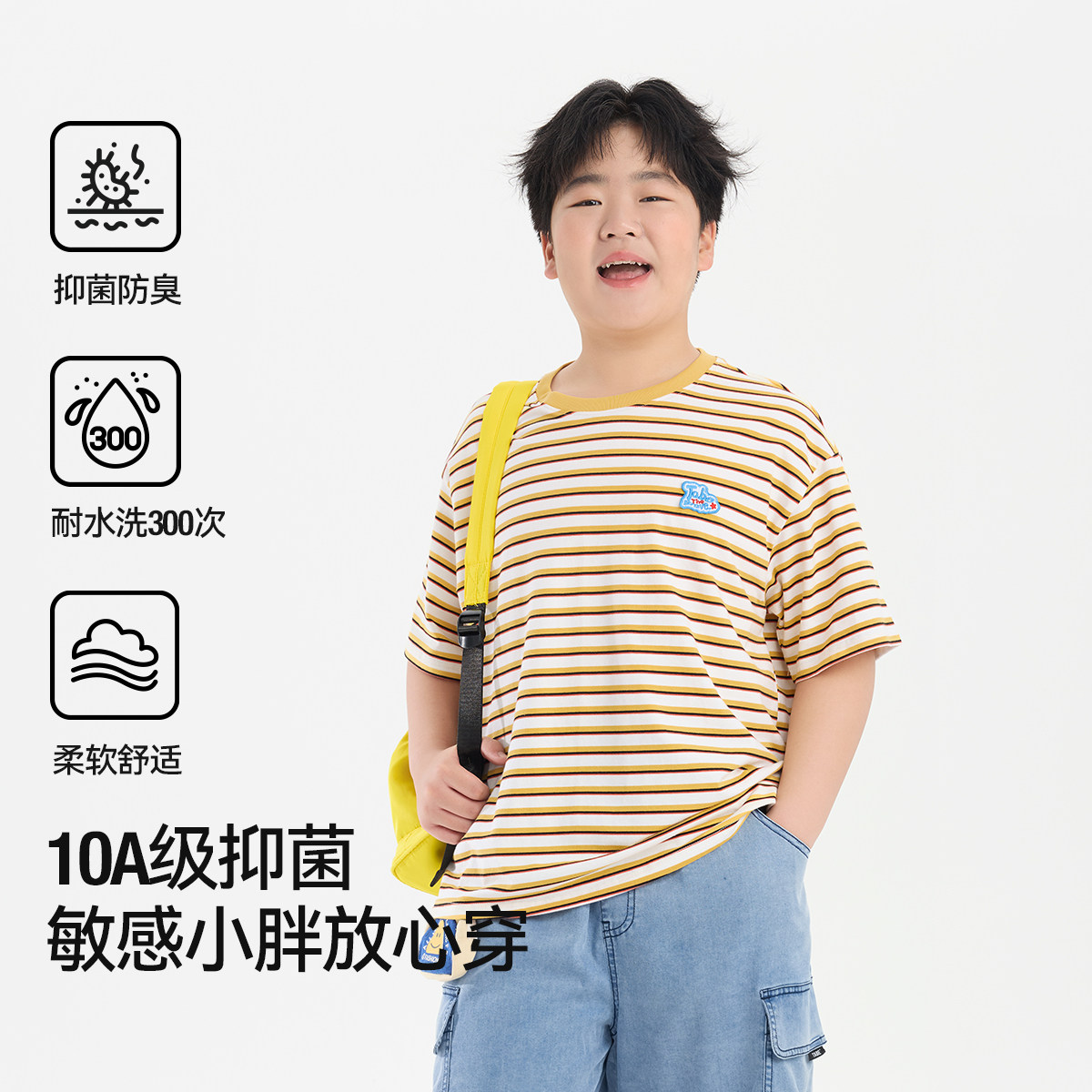 【经典简约大气】小猪托尼胖童T恤男童夏装中大童短袖条纹t大码棉