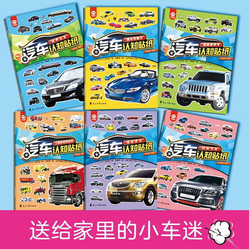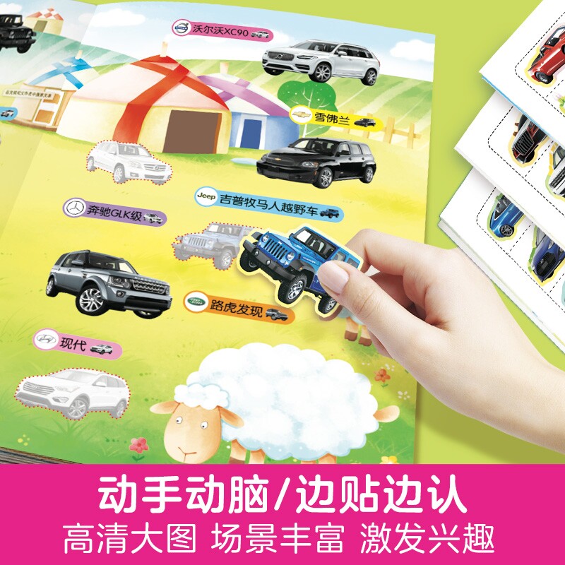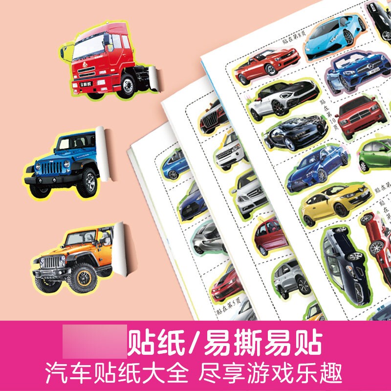 儿童汽车贴纸书启蒙认知贴纸书工程车小车迷贴纸益智全脑开发书男孩贴贴纸书2岁3-6岁4以上5宝宝幼儿专注力训练智力开发启蒙贴画书