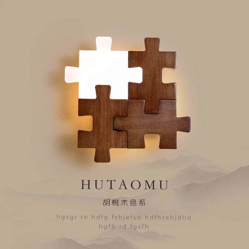 积木壁灯卧室床头灯现代简约玄关走廊过道灯创意胡桃木个性LED灯