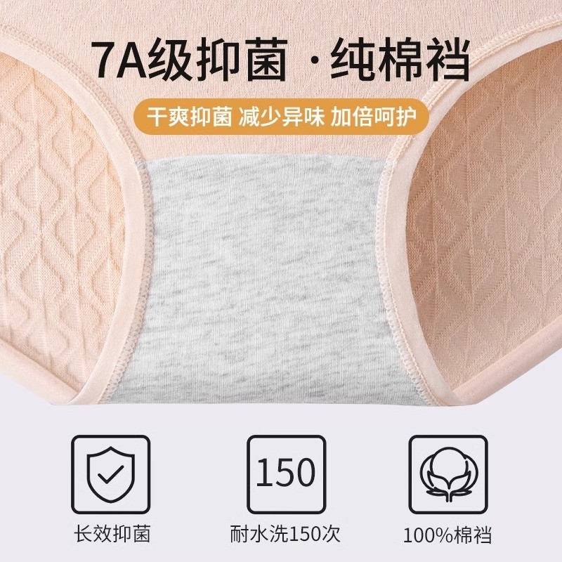 纯棉内裤女士全棉抗菌透气无痕A类医用级中腰少女生三角裤2025款