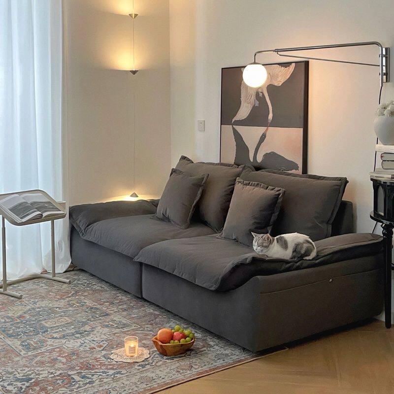三梦中古风布艺沙发小户型折叠两用压缩复古单双人模块布丁沙发床