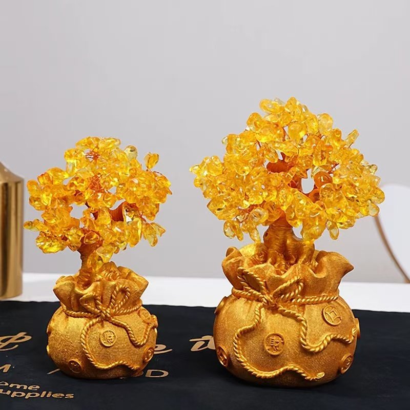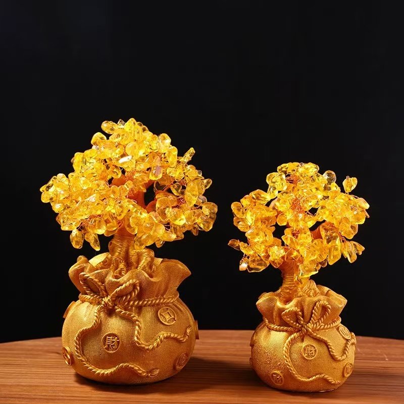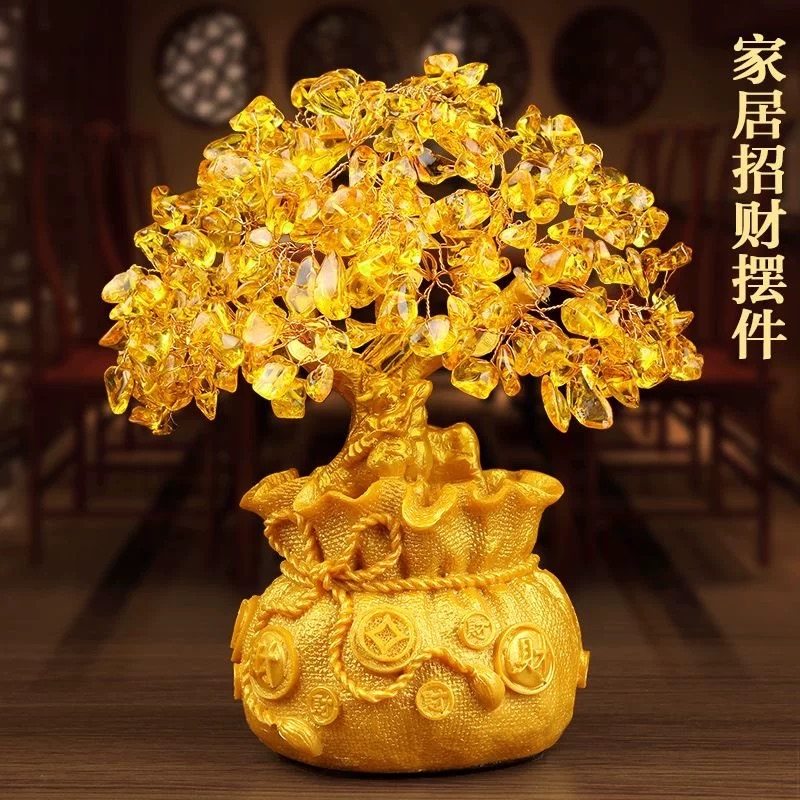 爆款黄水晶发财树招财摆件装饰品家居客厅酒柜玄关摇钱树开业礼品