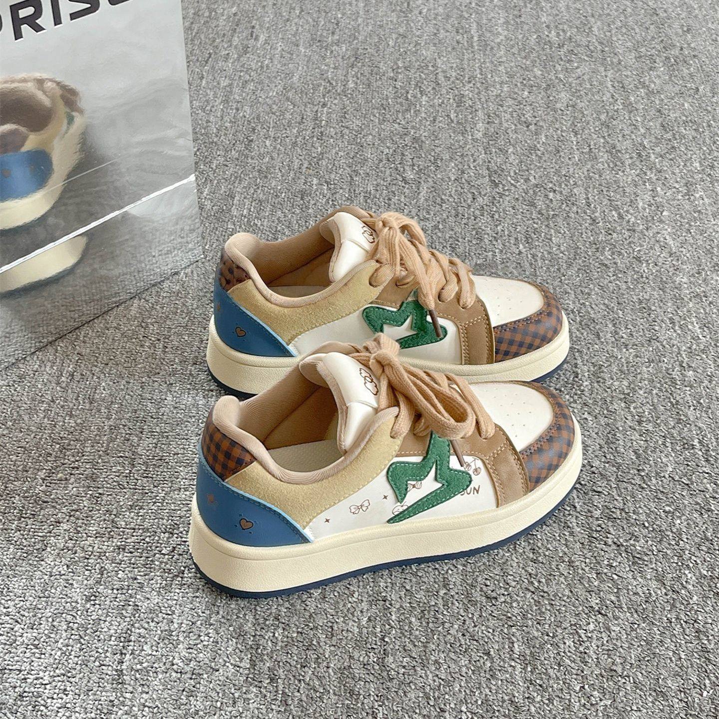 【明星同款】Wander around 复古棕色厚底增高休闲板鞋男女同款