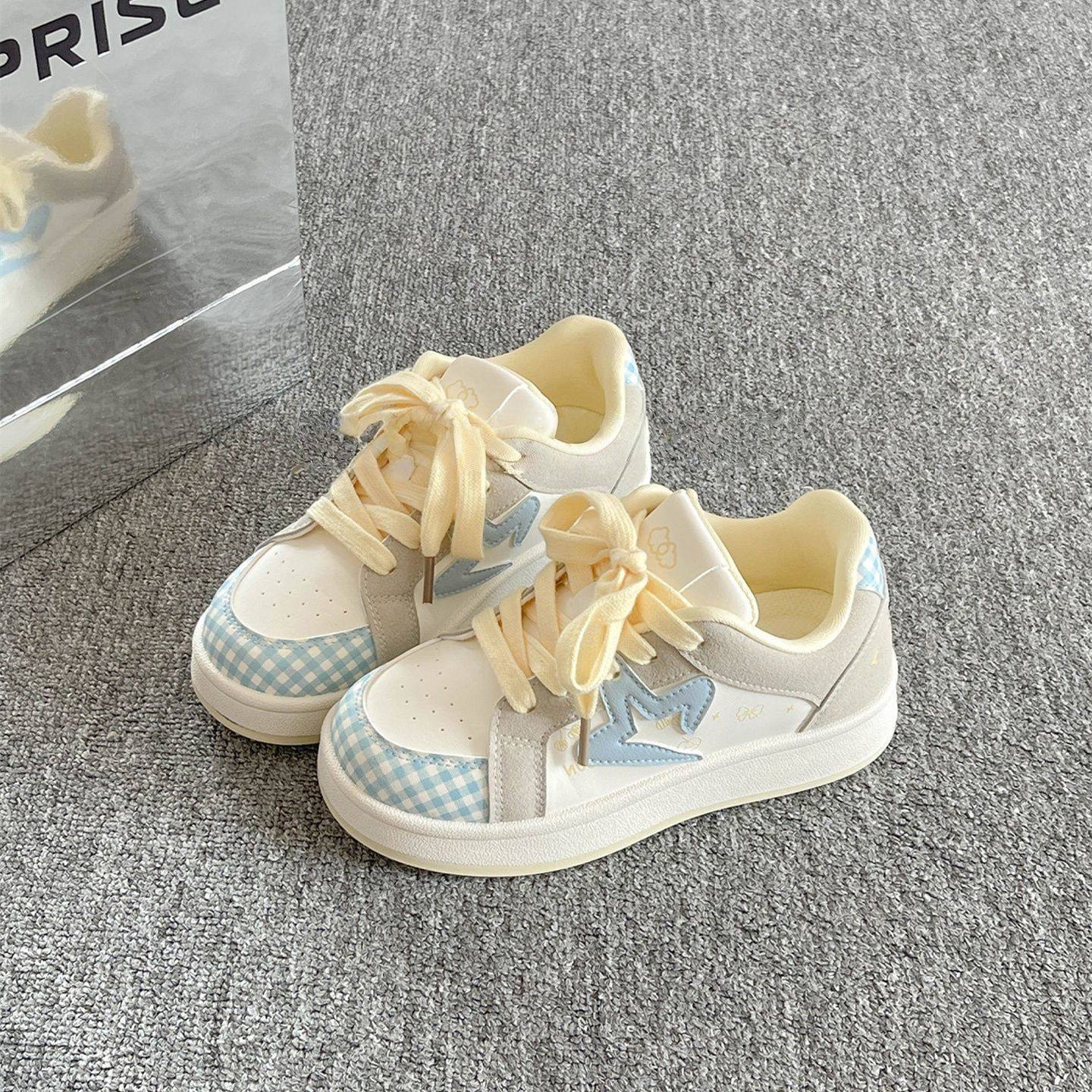 优妮蒂星星大码板鞋女2025秋新款厚底休闲百搭小众学生运动面包鞋