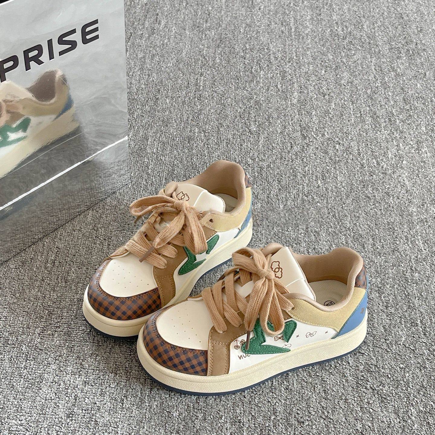 Wander around2025年秋季新款复古棕色厚底增高休闲板鞋女