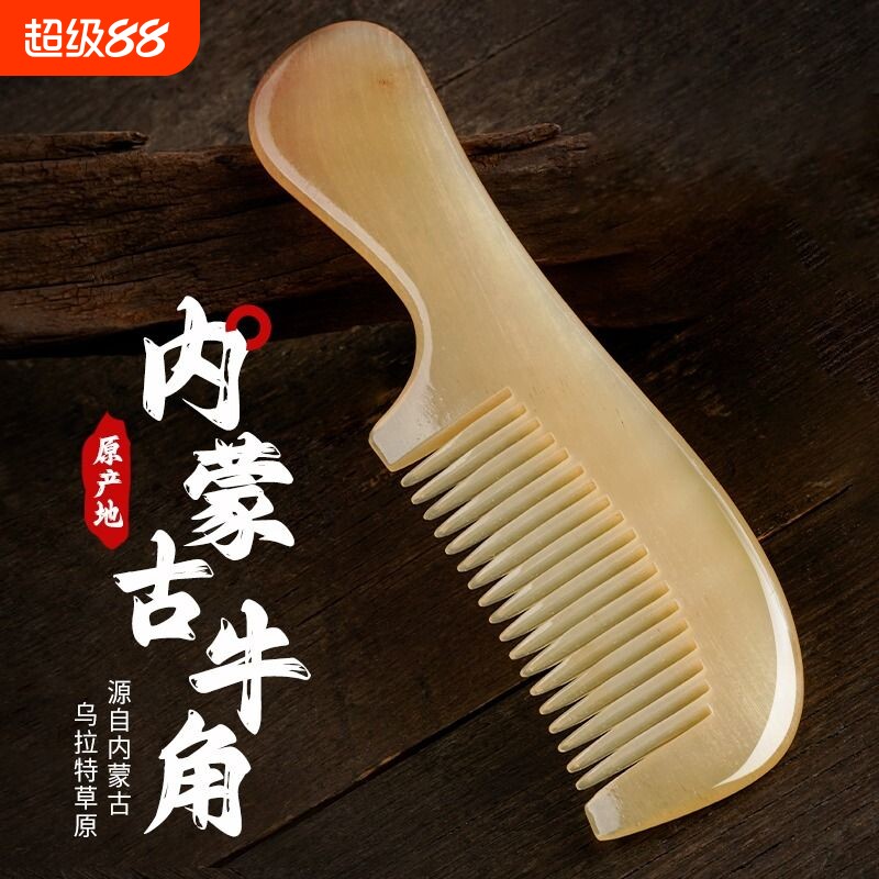 内蒙古真牛角梳子天然头部经络按摩梳女家用正品官方旗舰店静电纯