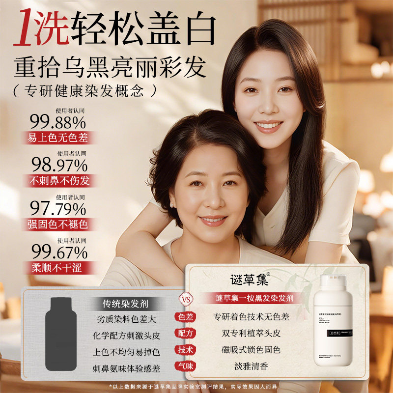 遮白发染发剂自然黑色纯植物一梳黑发一洗黑染发膏正品官方旗舰店