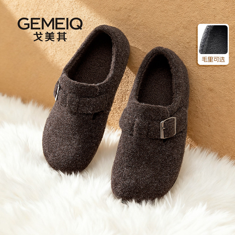 戈美其商场同款灰色勃肯鞋女鞋2025冬季新款爆款休闲加绒保暖棉鞋
