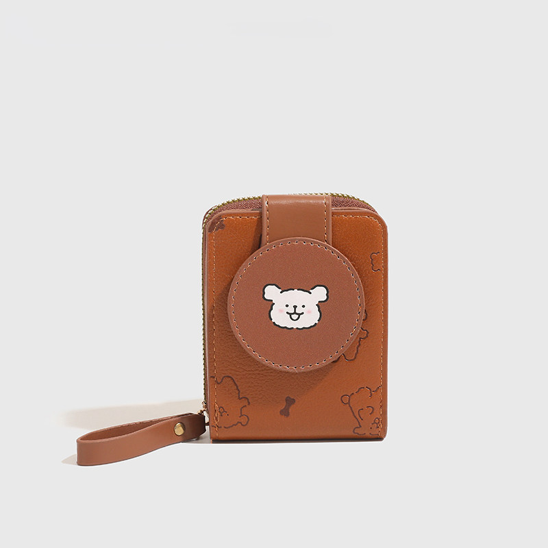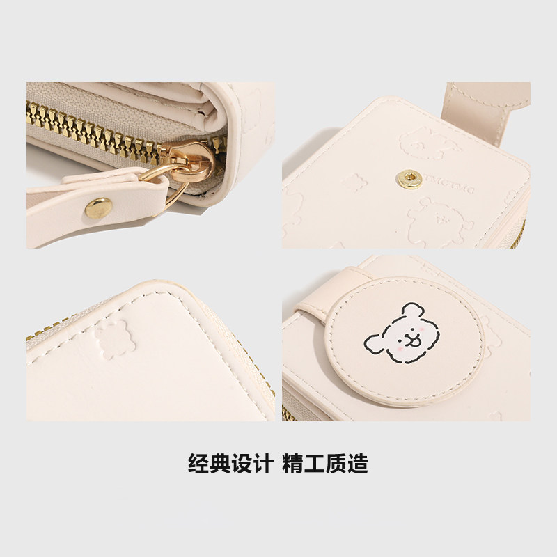 线条小狗钱包卡包一体大容量女生可爱证件收纳零钱包多功能证件包