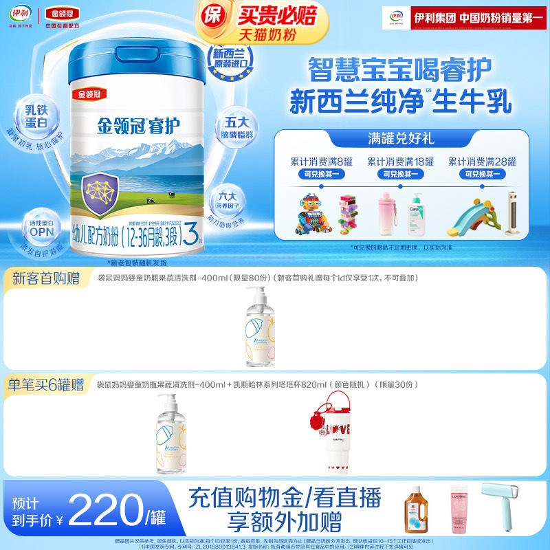 伊利金领冠睿护3段12-36个月婴幼儿新西兰原装进口牛奶粉800g