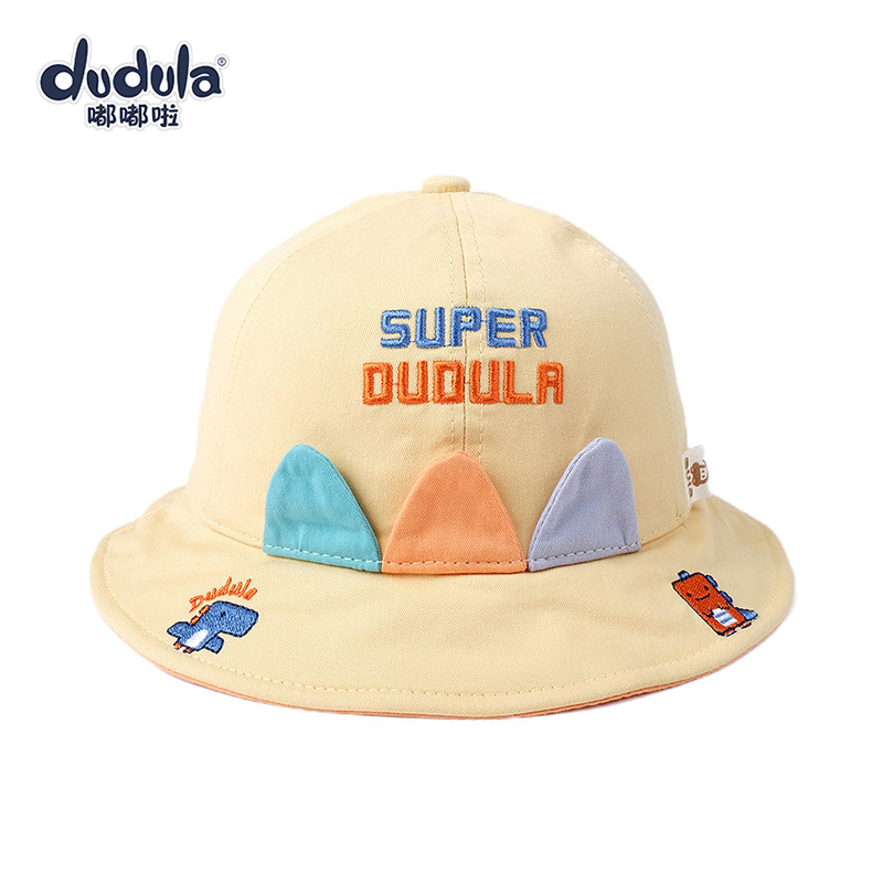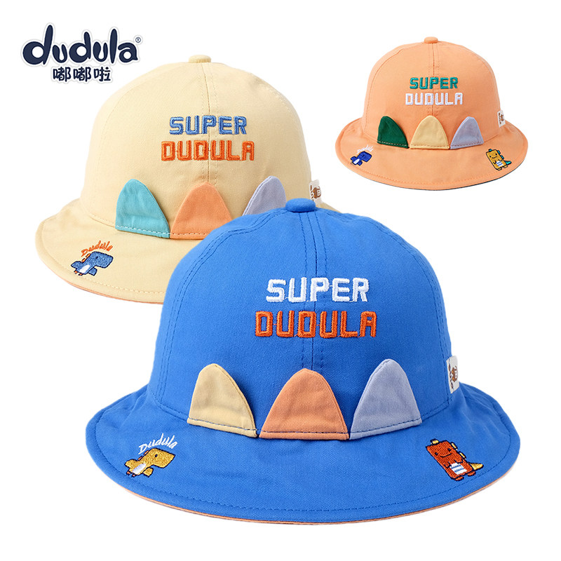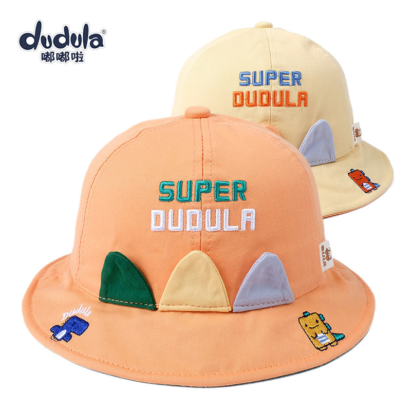 嘟嘟啦婴幼儿童太阳帽卡通恐龙渔夫帽春秋纯棉男女宝宝盆帽子可爱