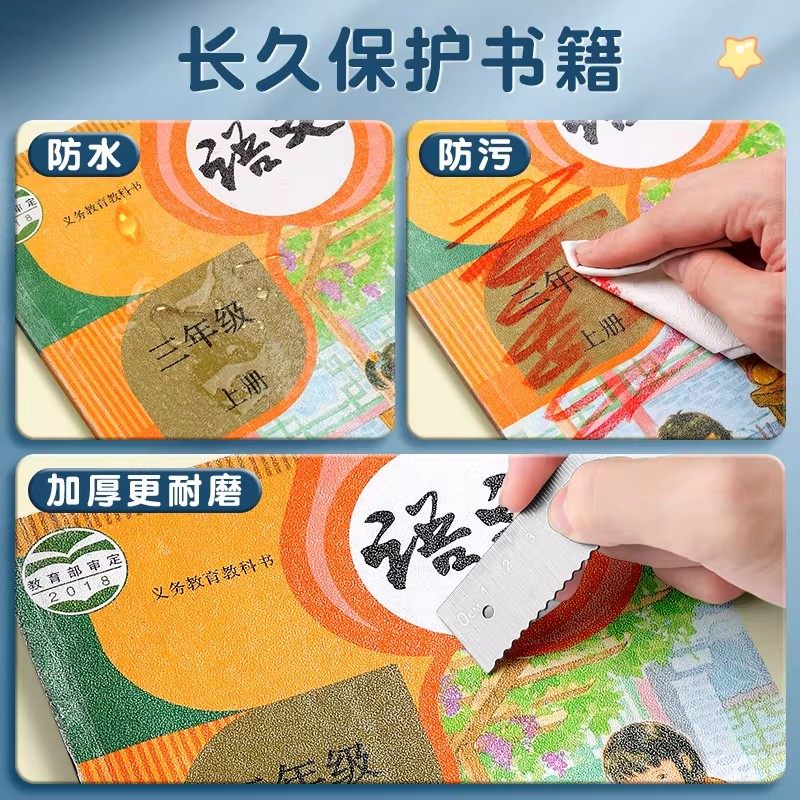 包书皮自粘透明磨砂书皮纸小学生专用一年级二三年上册中号16k课本2025新款书本封皮保护套书套书膜全套贴纸