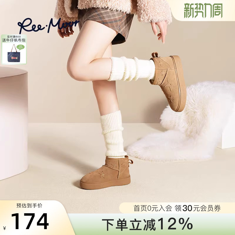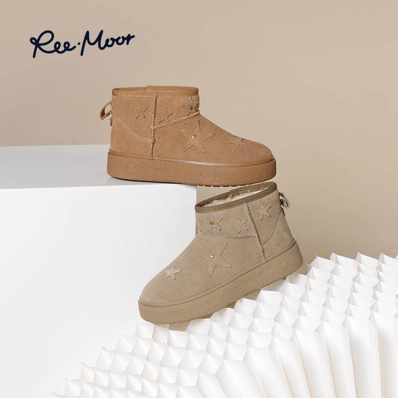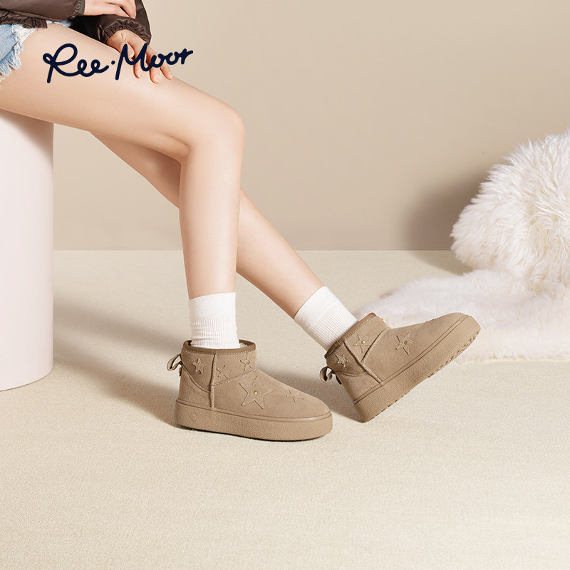 REEMOOR睿慕2025冬季新款东北雪地靴厚底增高加绒保暖舒适棉鞋女