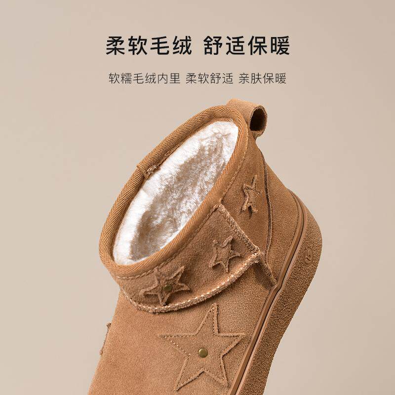 真皮雪地靴女冬季加绒加厚防滑中筒厚底软底皮面短筒学生棉鞋增高