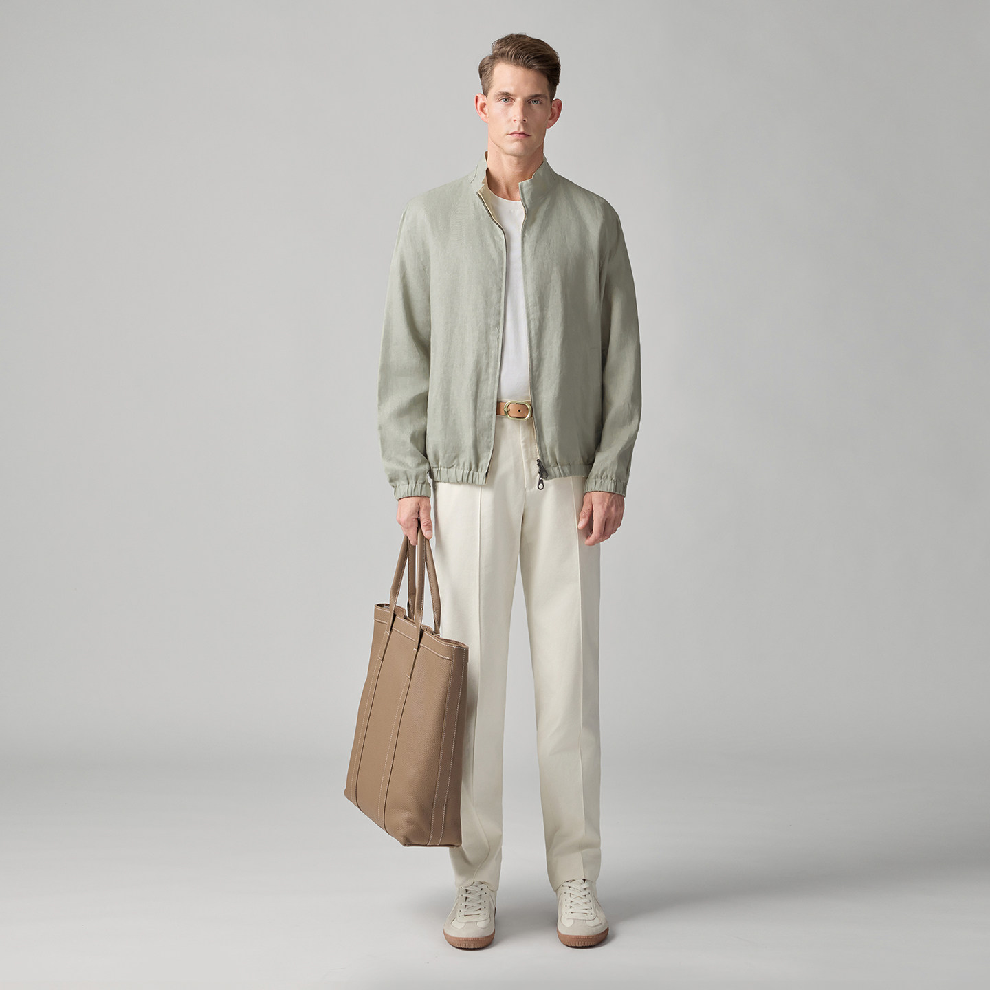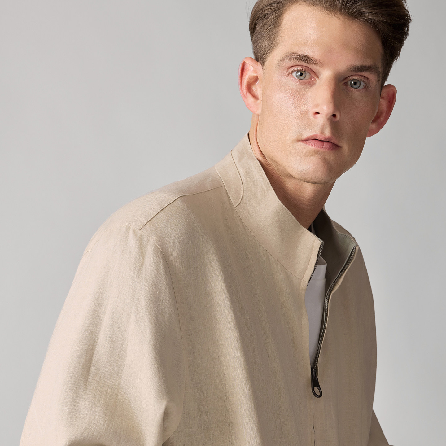 柏品双面穿纯亚麻立领夹克男士2026新款休闲老钱风复古商务外套