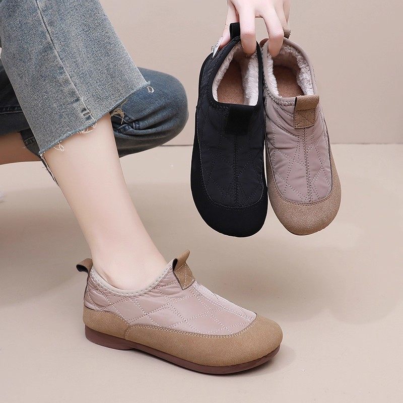 低帮厚底雪地靴女2025新款冬季懒人一脚蹬毛毛棉鞋加绒加厚女鞋子