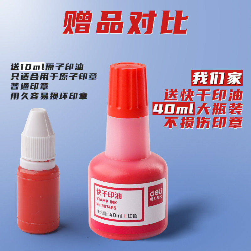 得力秒干印泥红色印台印章专用快干印尼印油按手印打卡指纹神器迷你小印台小号便携盖章办公用品耗材合同E1