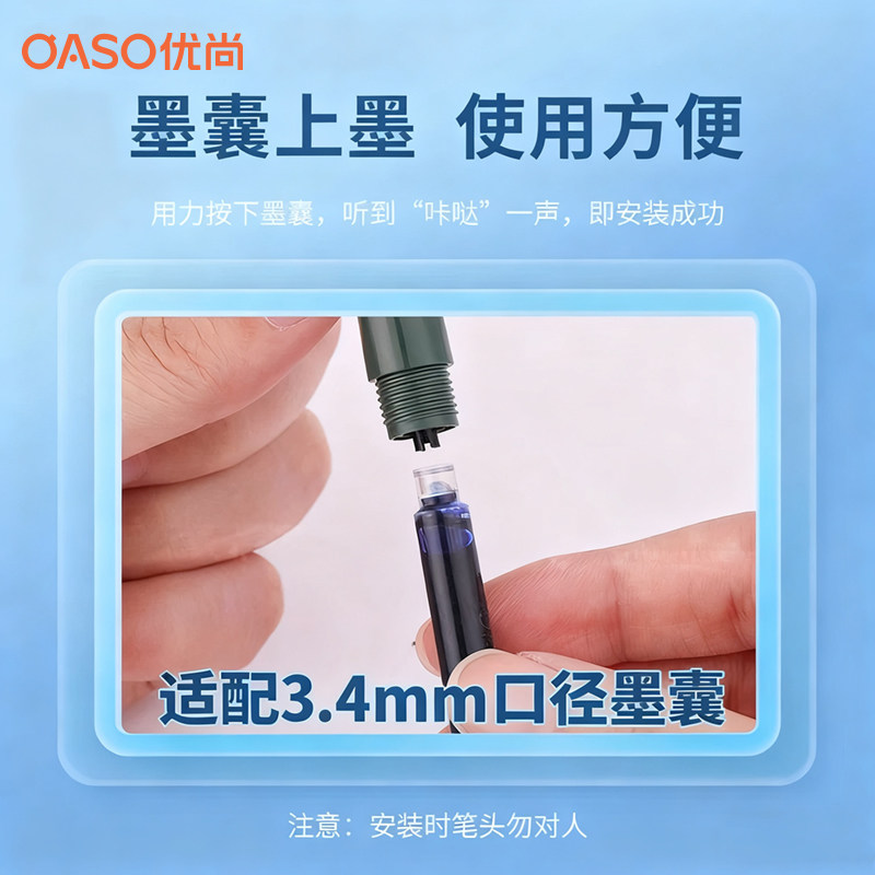 OASO优尚按动钢笔K016潜艇仓密封自动按压式钢笔三年级小学生练字专用成人硬笔书法墨水笔可替换墨囊定制刻字