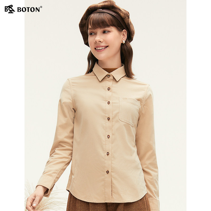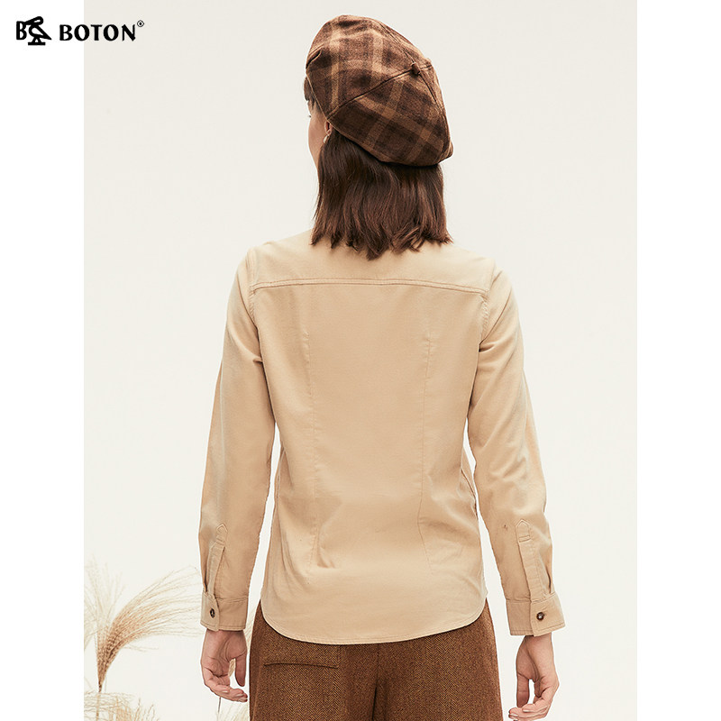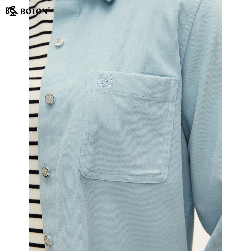 波顿2025秋冬季新款女士灯芯绒长袖衬衫高端美式休闲英伦风衬衣
