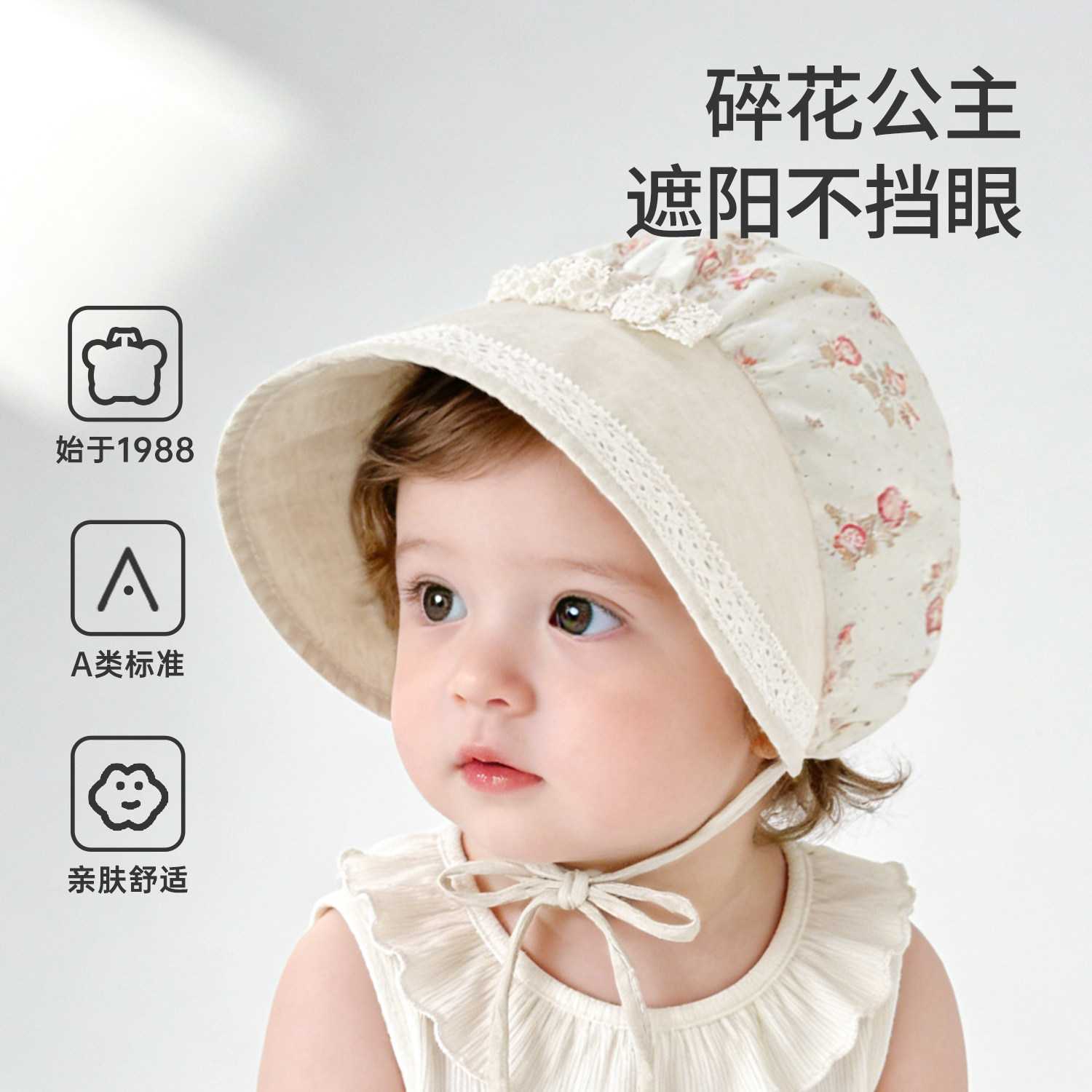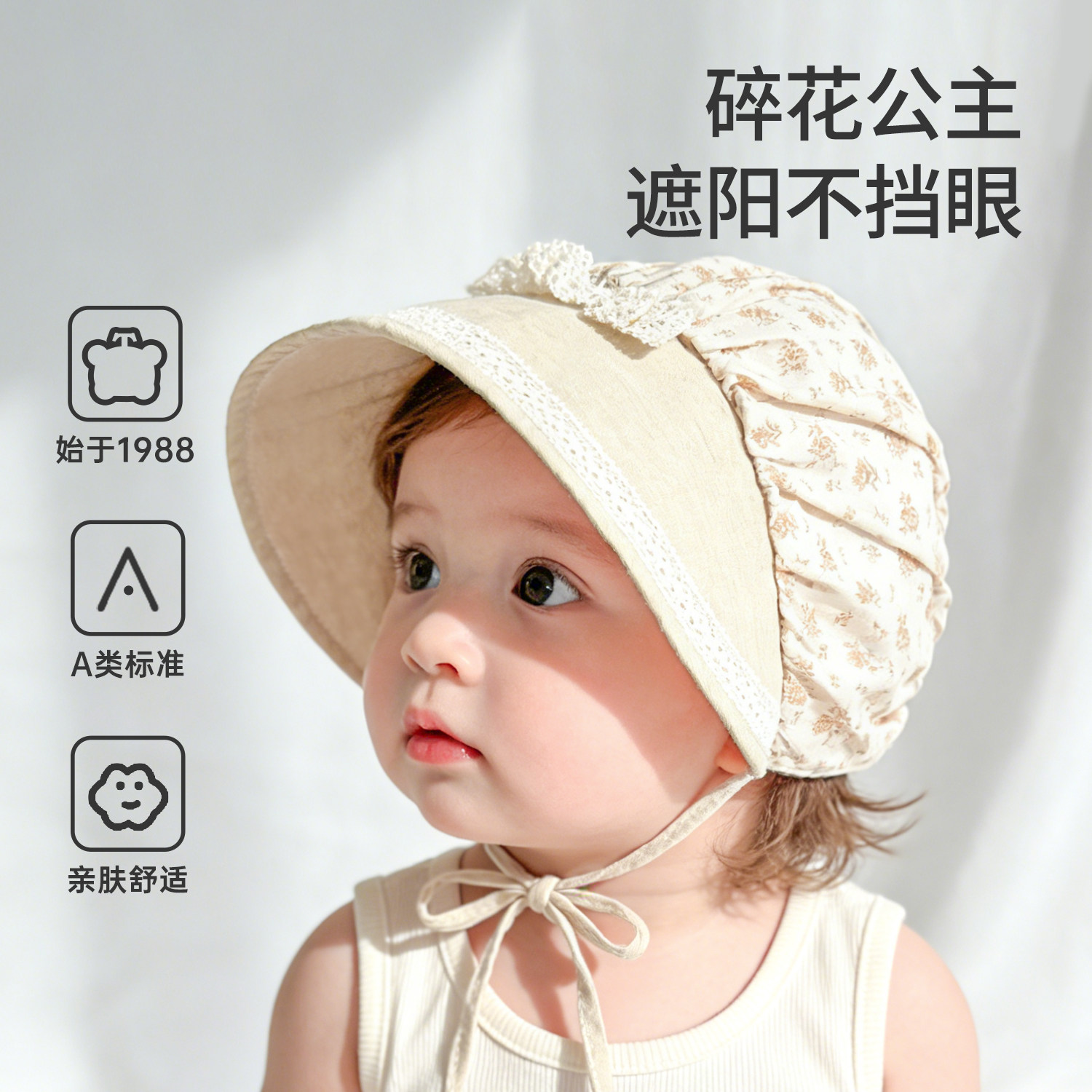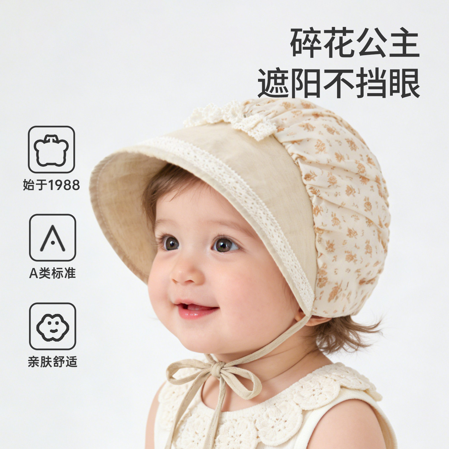 婴儿帽子春秋款女宝宝防晒帽婴幼儿公主小月龄遮阳帽外出护囟门帽