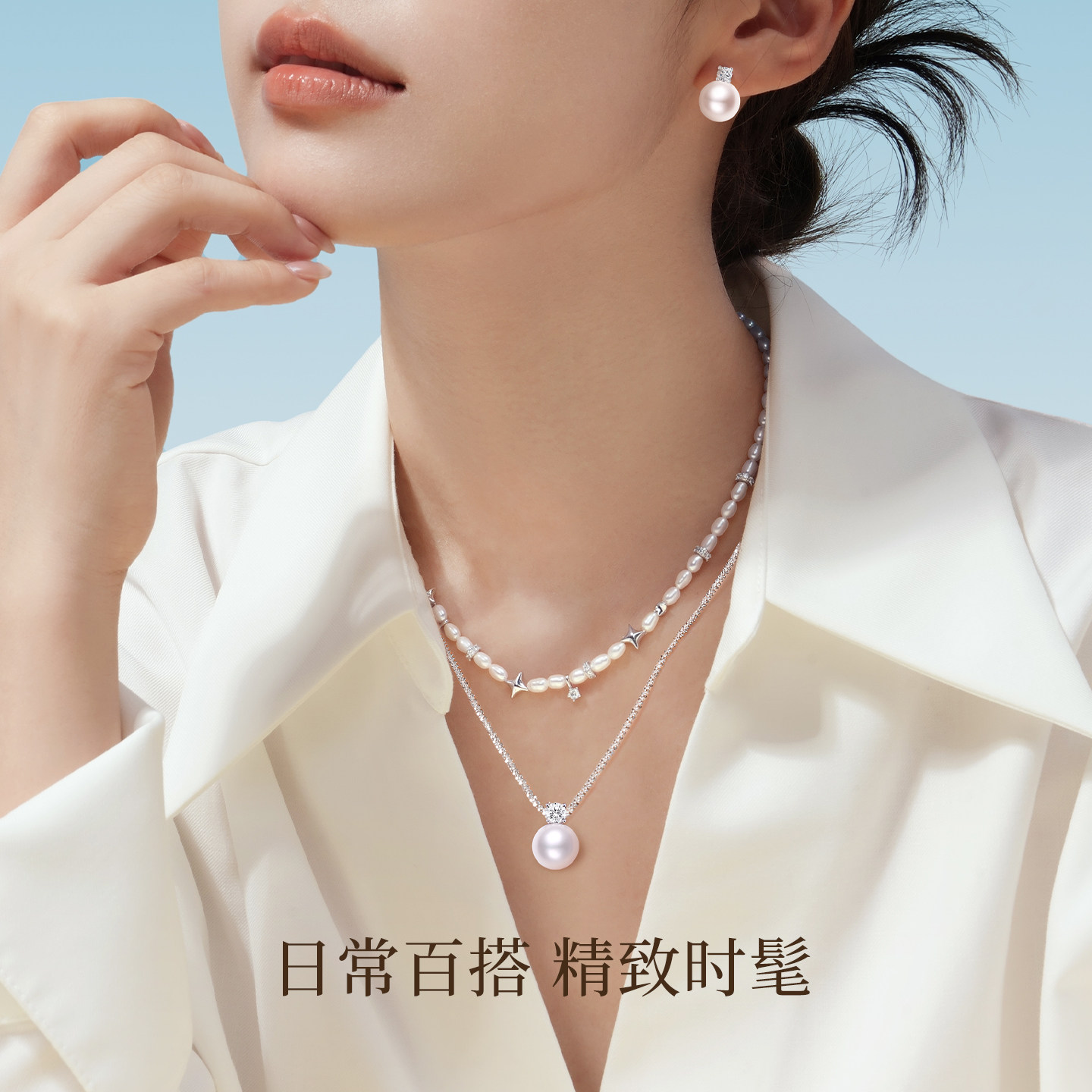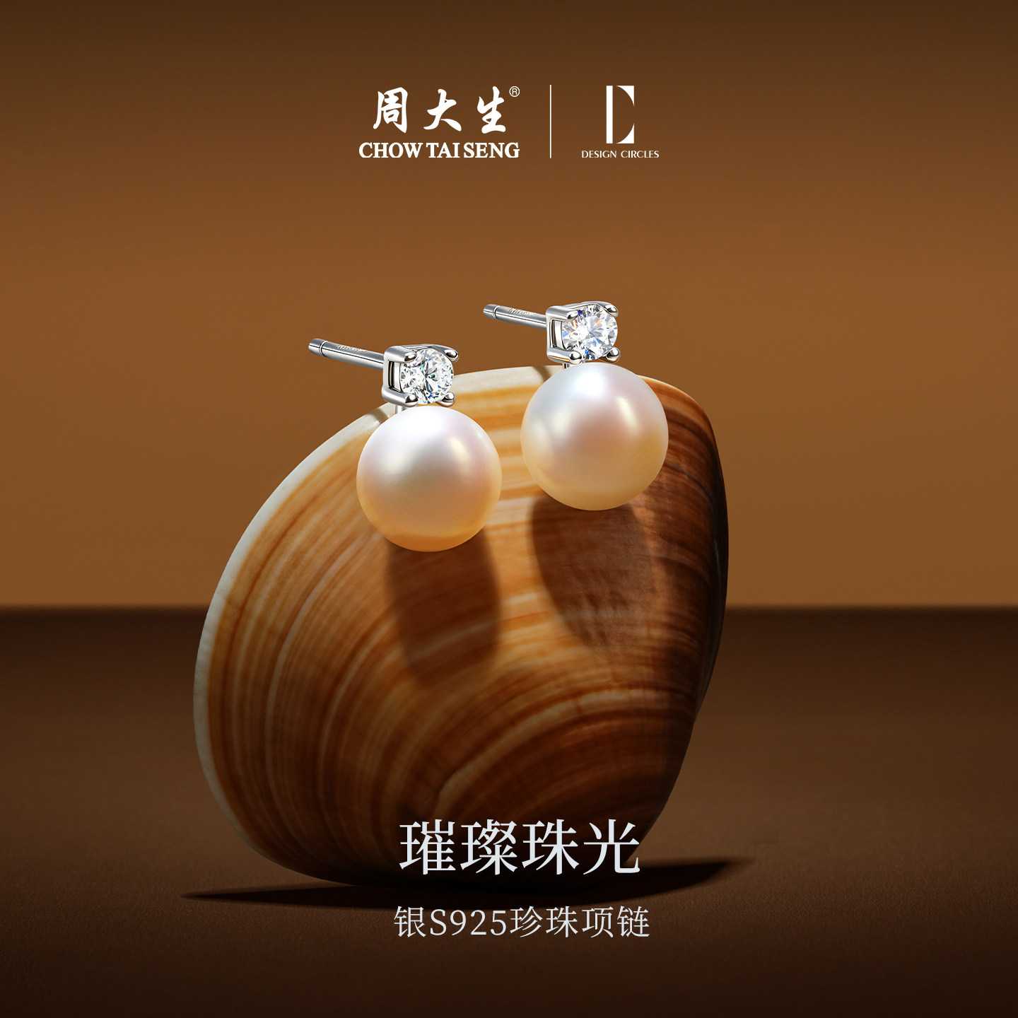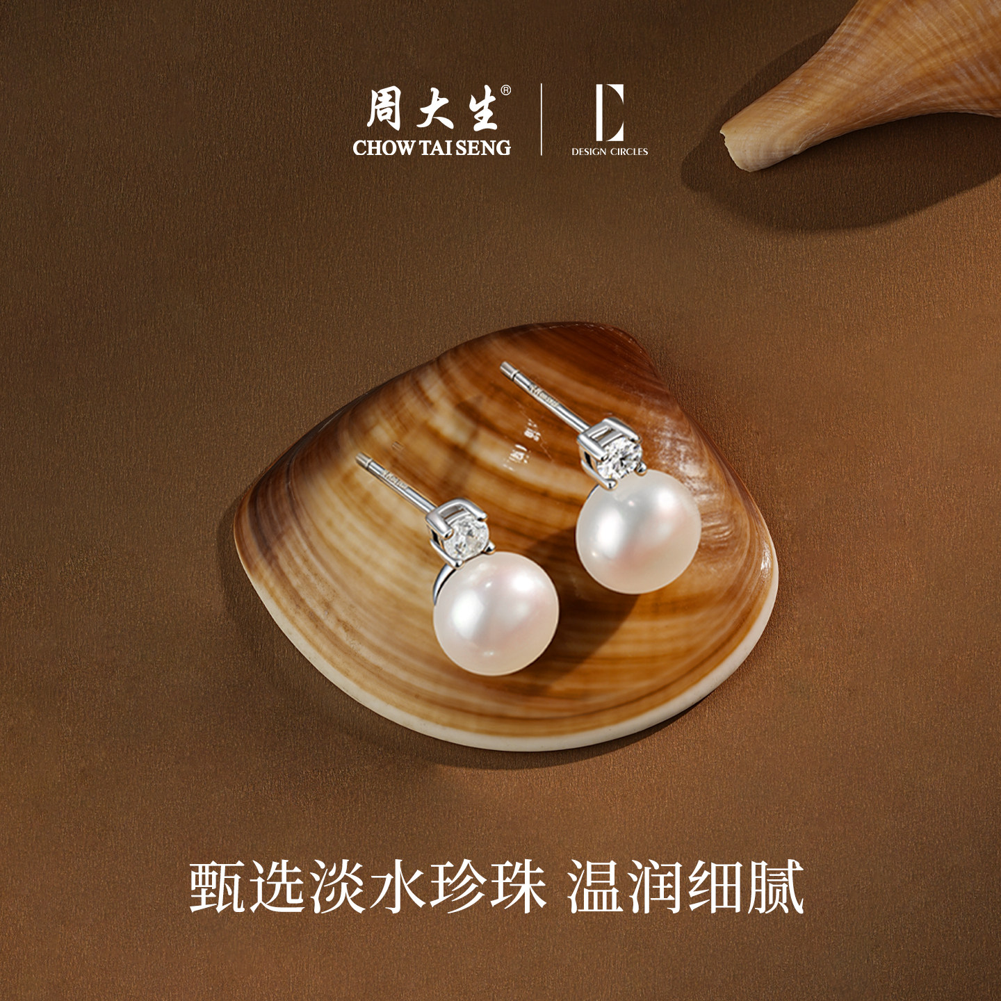 周大生璀璨珍珠耳钉S925纯银女简约轻奢高级感耳饰送女友生日礼物