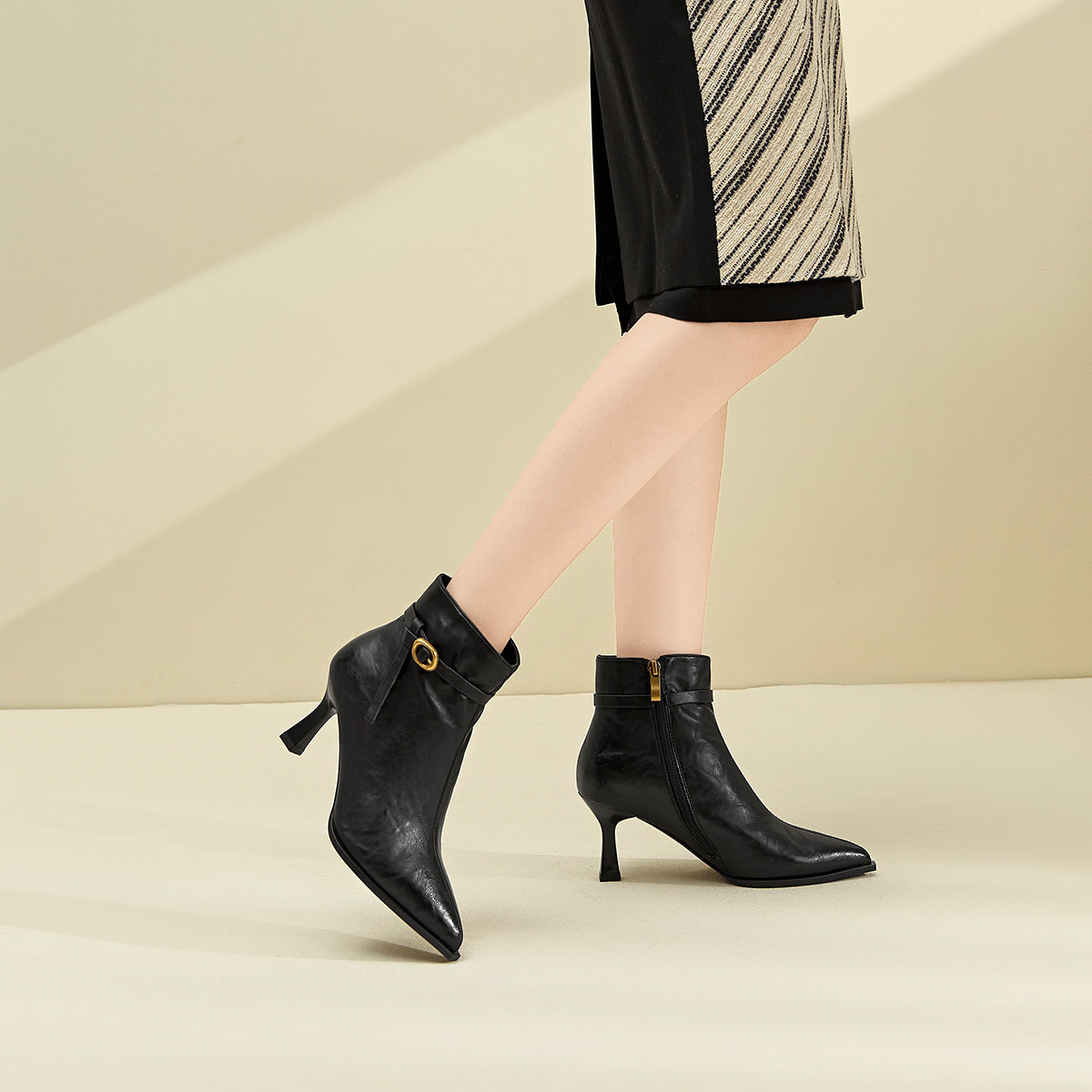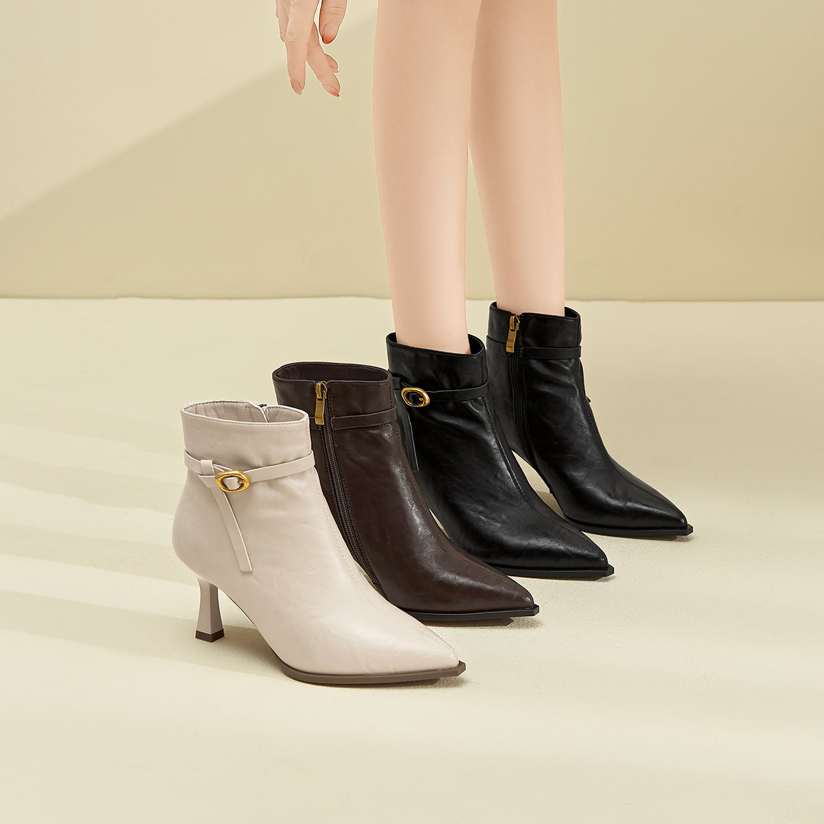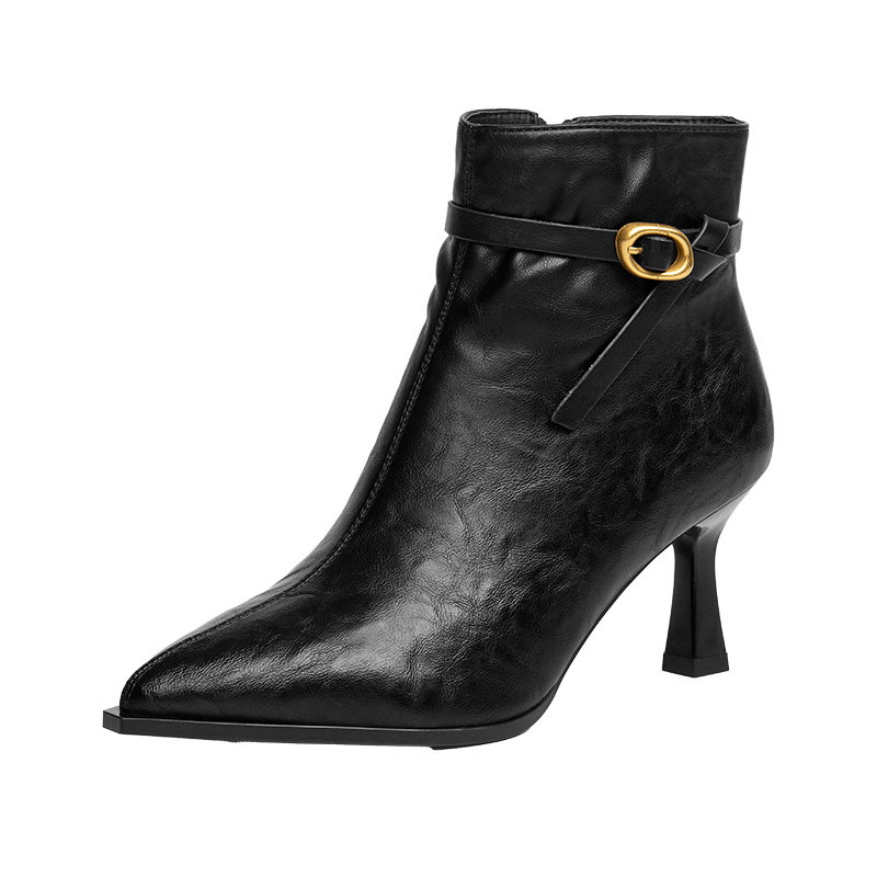 戈美其小跟高跟鞋女2025秋冬季小短靴尖头细跟瘦瘦靴女时装单靴