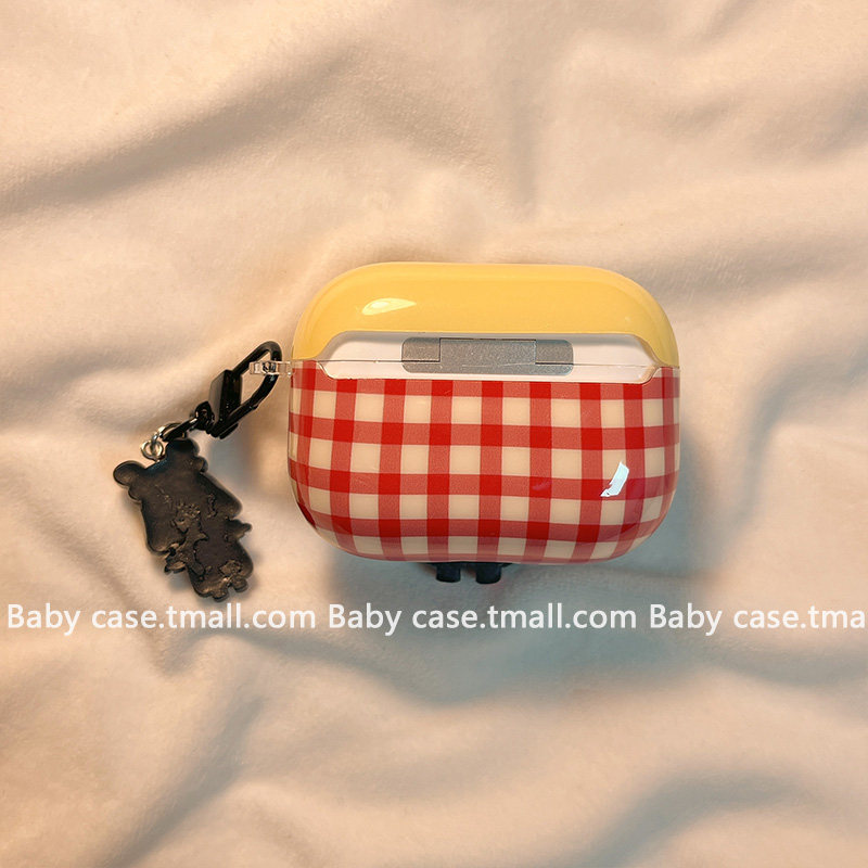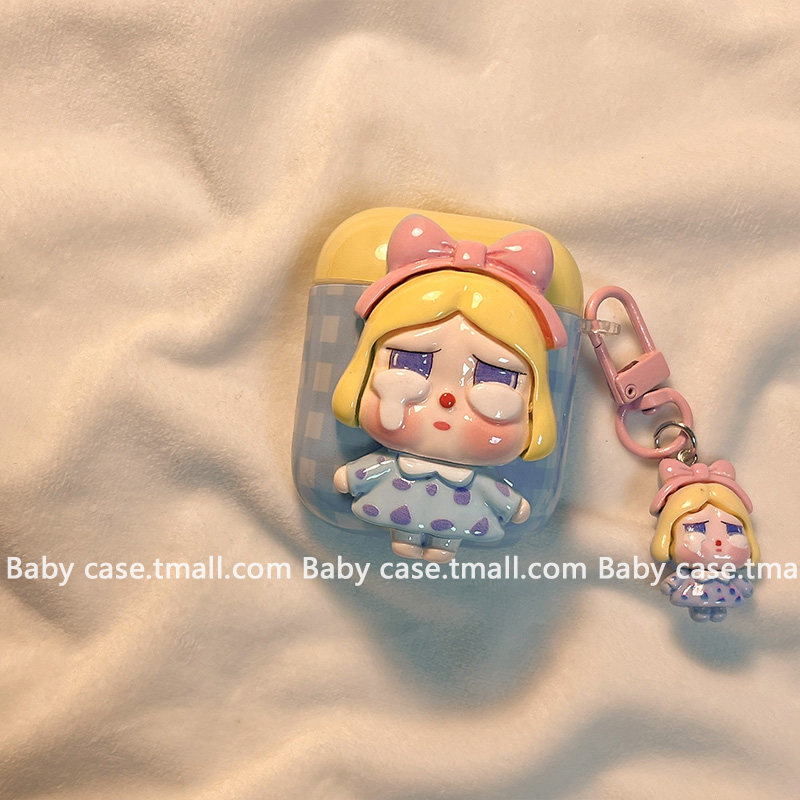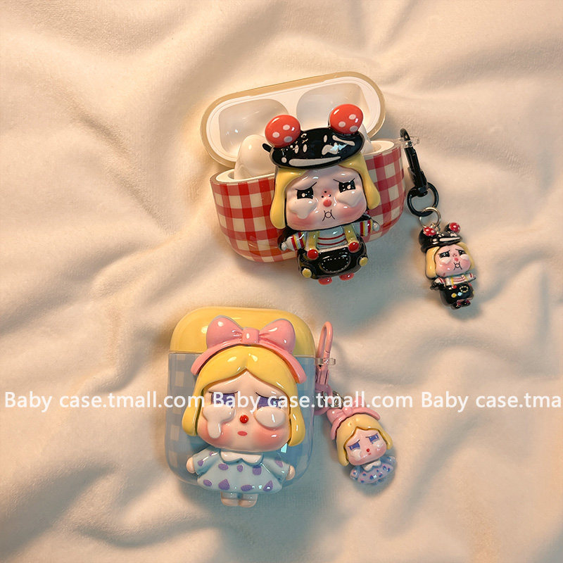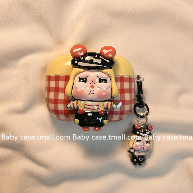 日韩撞色格纹可爱卡通哭娃适用苹果耳机壳