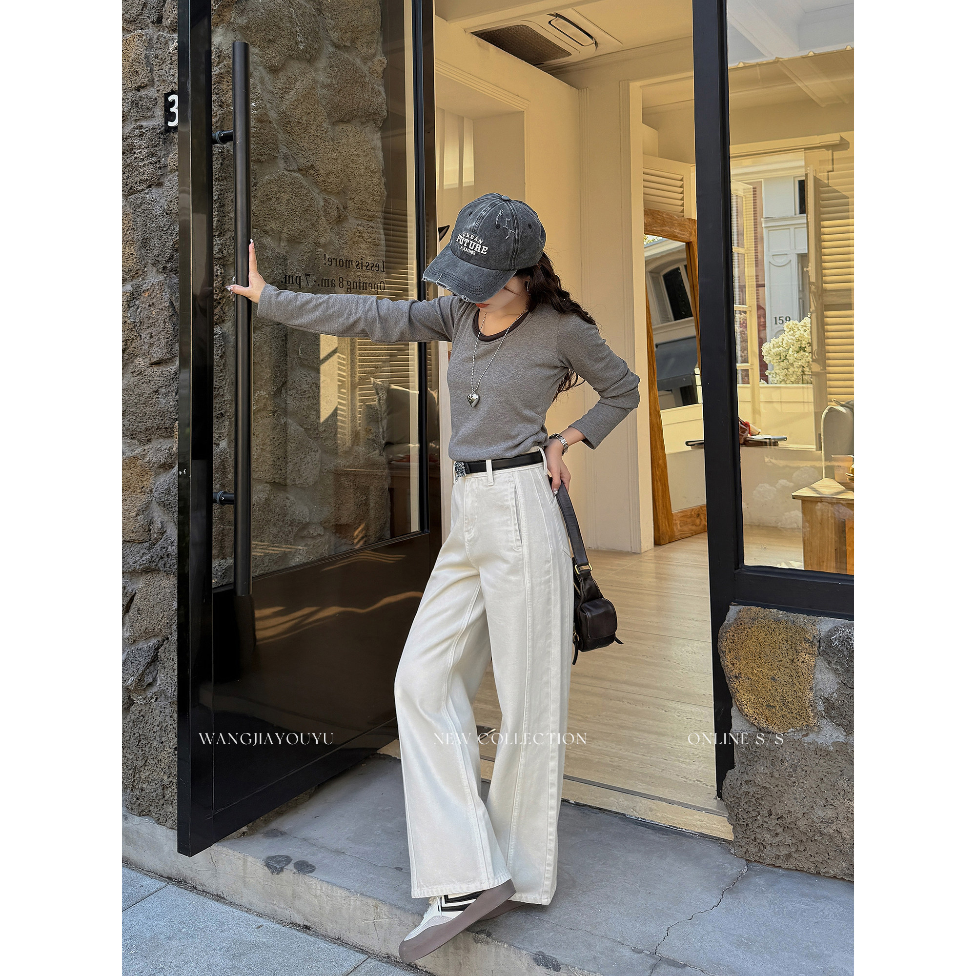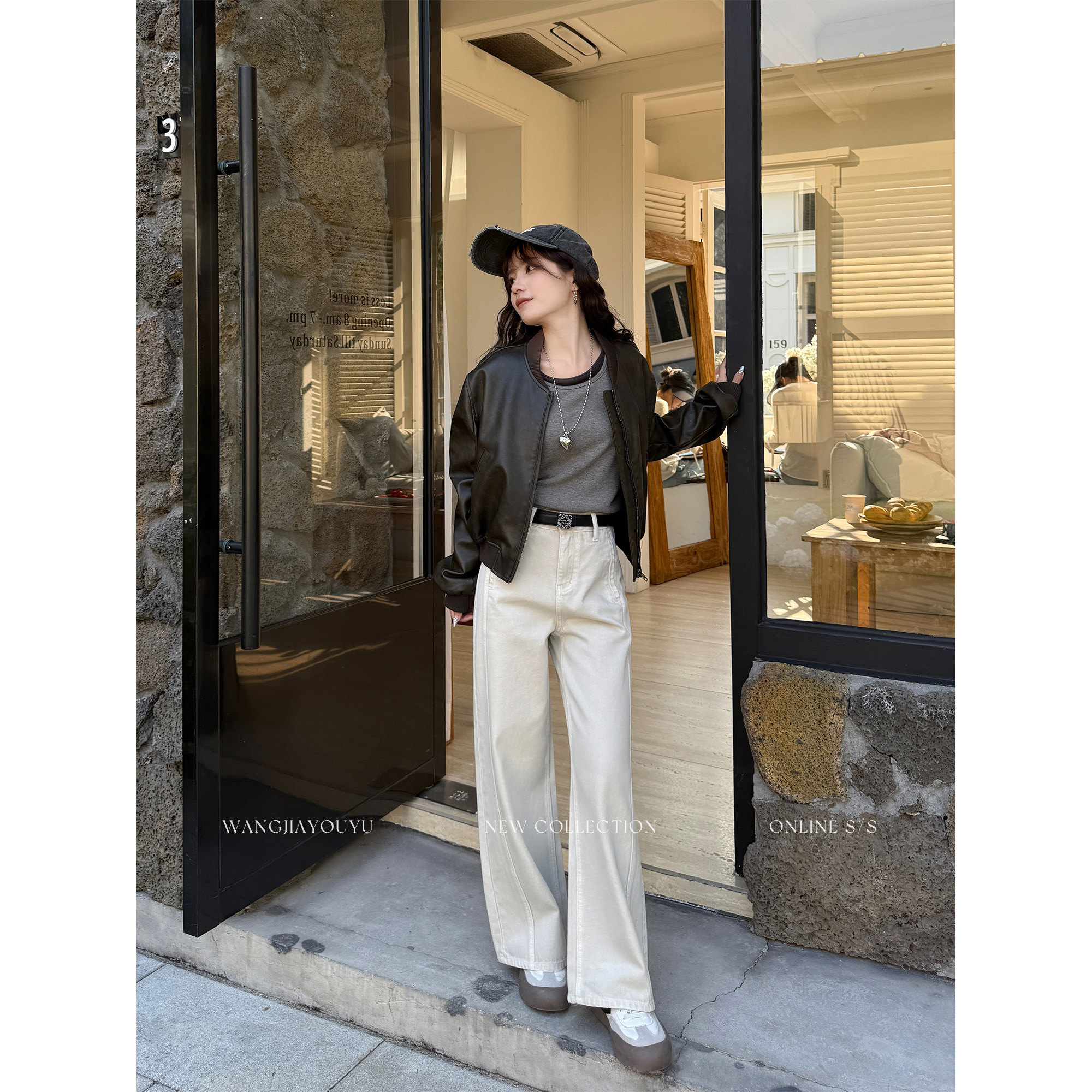 王家有鱼【小个子定制】早春浅卡其直筒阔腿裤2026新款牛仔裤女款
