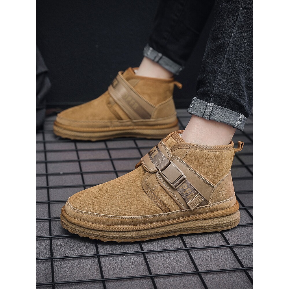 冬季2025新款男士翻边雪地靴冬季加绒加厚保暖防滑短靴棉鞋男潮流