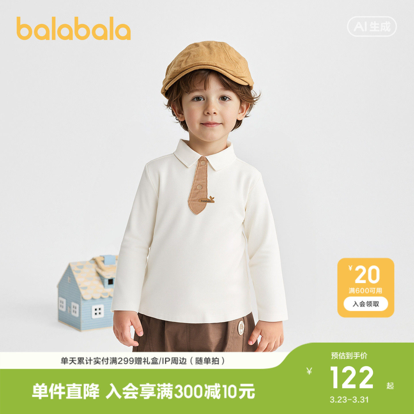 【商场同款】巴拉巴拉童装儿童长袖t恤男童2026新春装领带半开襟