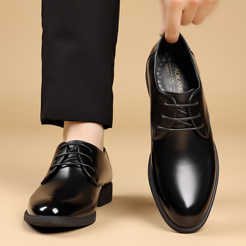 奥康男鞋春秋季商务正装皮鞋牛皮办公室真皮系带男士工作大码皮鞋