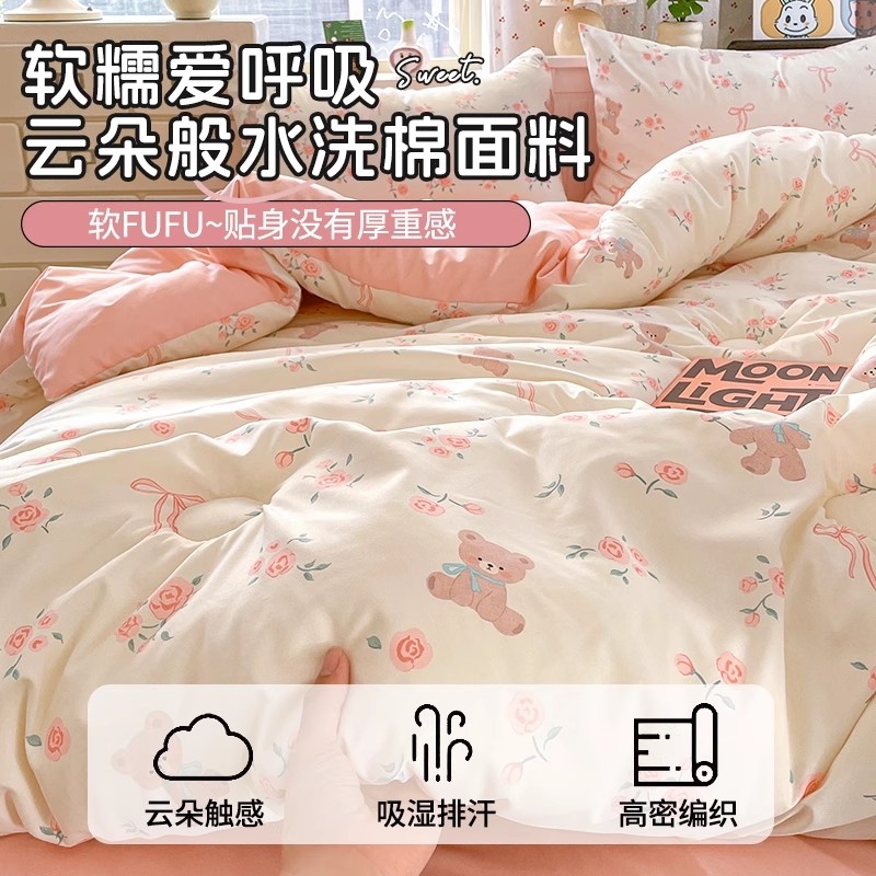 A类全棉夏凉被四件套纯棉空调被可机洗薄被子夏季单人夏被三件套4