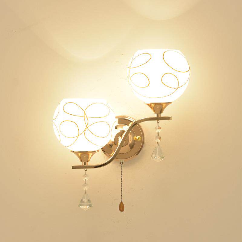 LED卧室床头灯带拉线开关现代简约阳台楼梯客厅过道双头墙壁灯