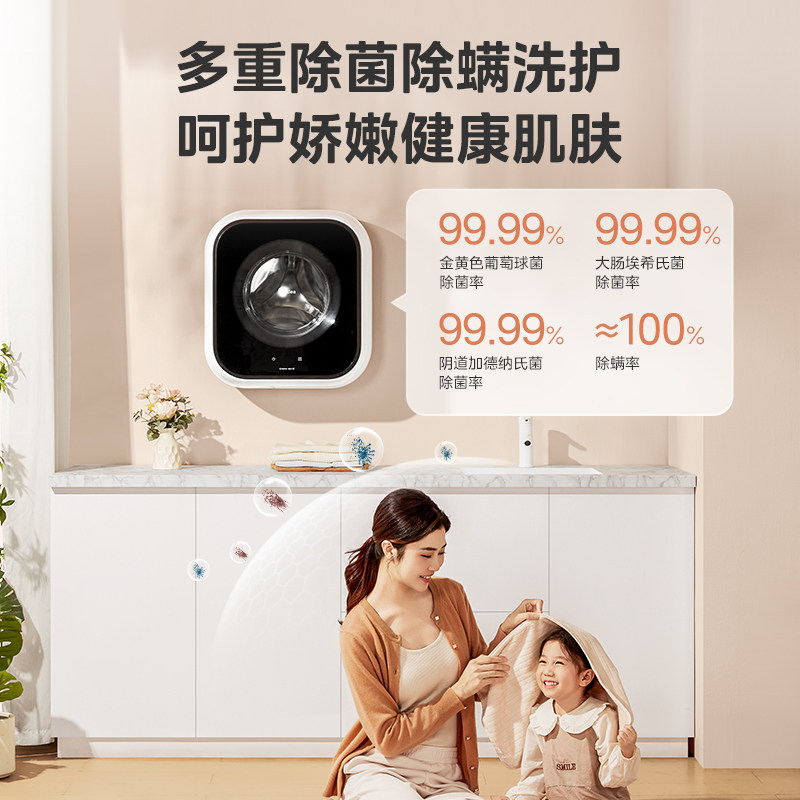 美的安睡3kg小型母婴全自动家用滚筒迷你壁挂洗衣机洗烘一体机MAX